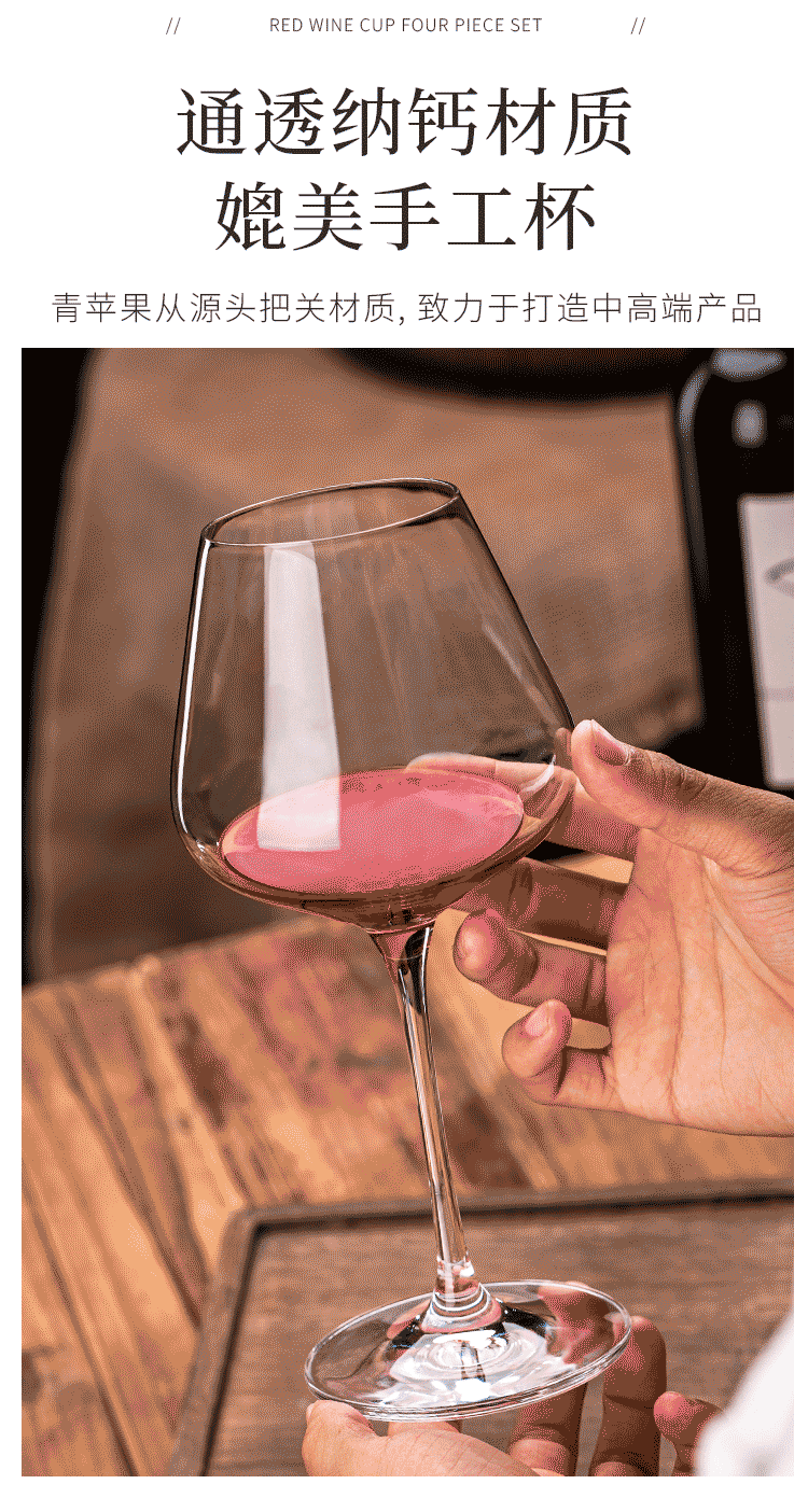 青苹果红酒杯350ml2只装 高脚杯葡波尔多萄酒杯 无铅玻璃杯洋酒杯