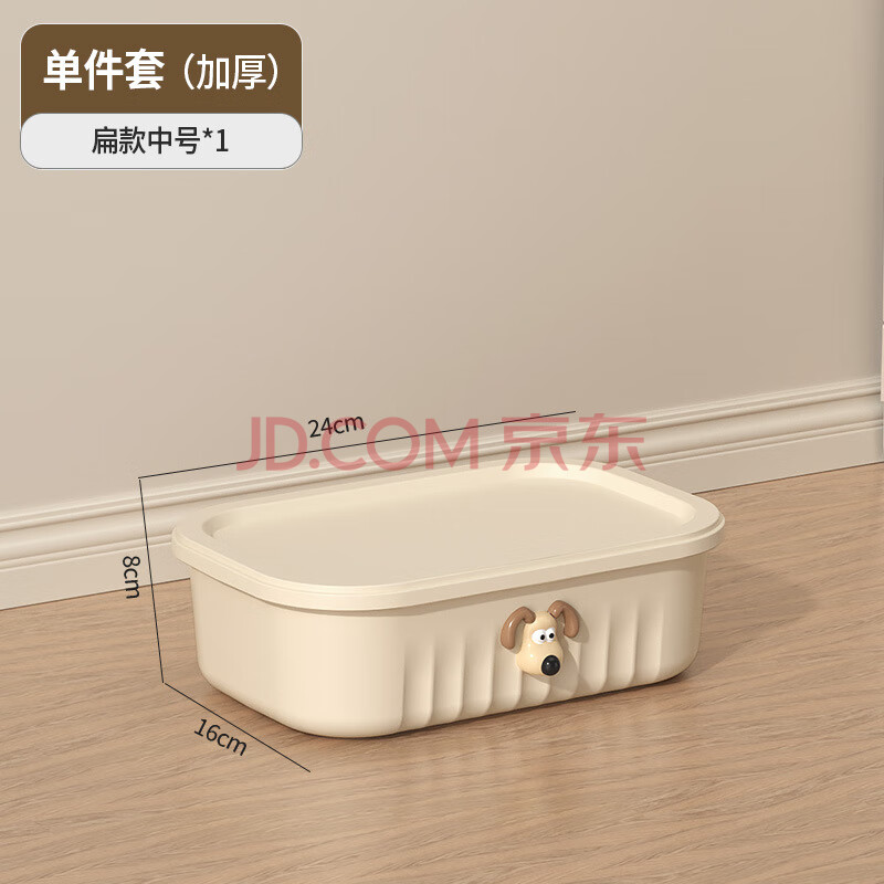 三纥杂物收纳盒收纳储物盒玩具收纳筐 奶油风扁款中号-带盖