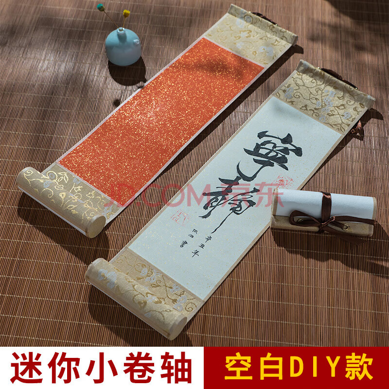 青弋 迷你小卷轴手写禅意书法小挂轴半生熟毛笔字书法作品纸蜡染空白宣纸画轴 小号瀛海笺酒红款