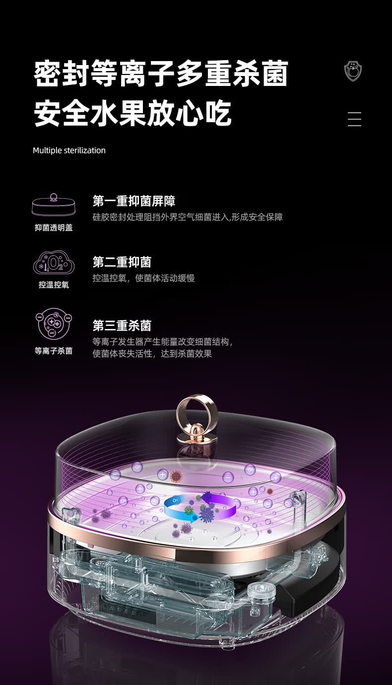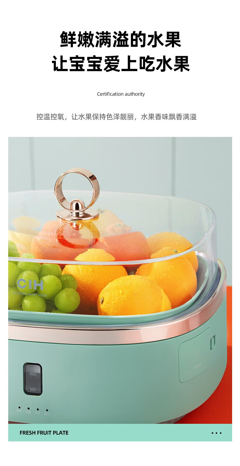 CIH控氧锁鲜水果盘新型智能等离子杀菌保鲜盒客厅家用大号多功能制冷保鲜果娄 布鲁克绿