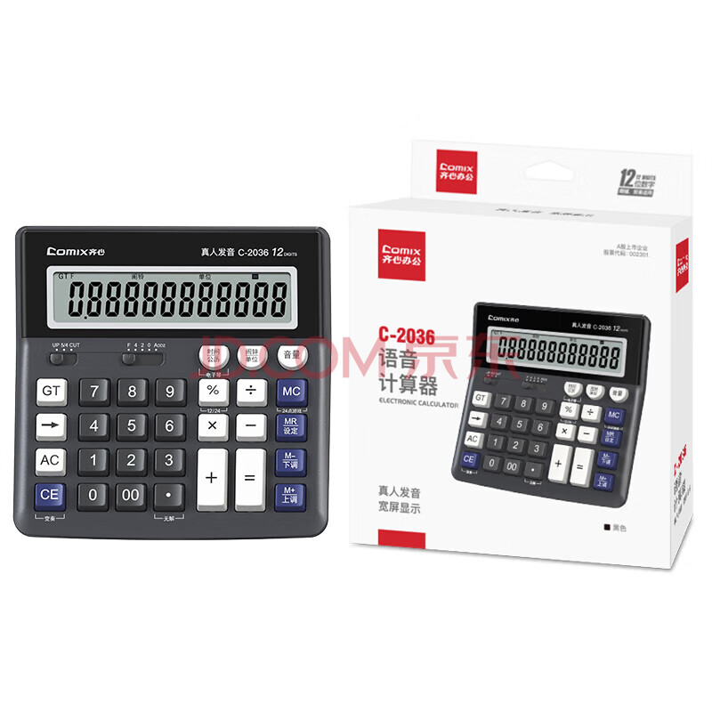 齐心(COMIX) 语音计算器 真人发音财务计算器 多功能大屏幕计算器 黑色 C-2036