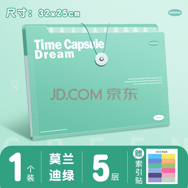 科野风琴包a4大容量插页文件夹分类收纳袋10个起订 绿色带扣风琴包5层