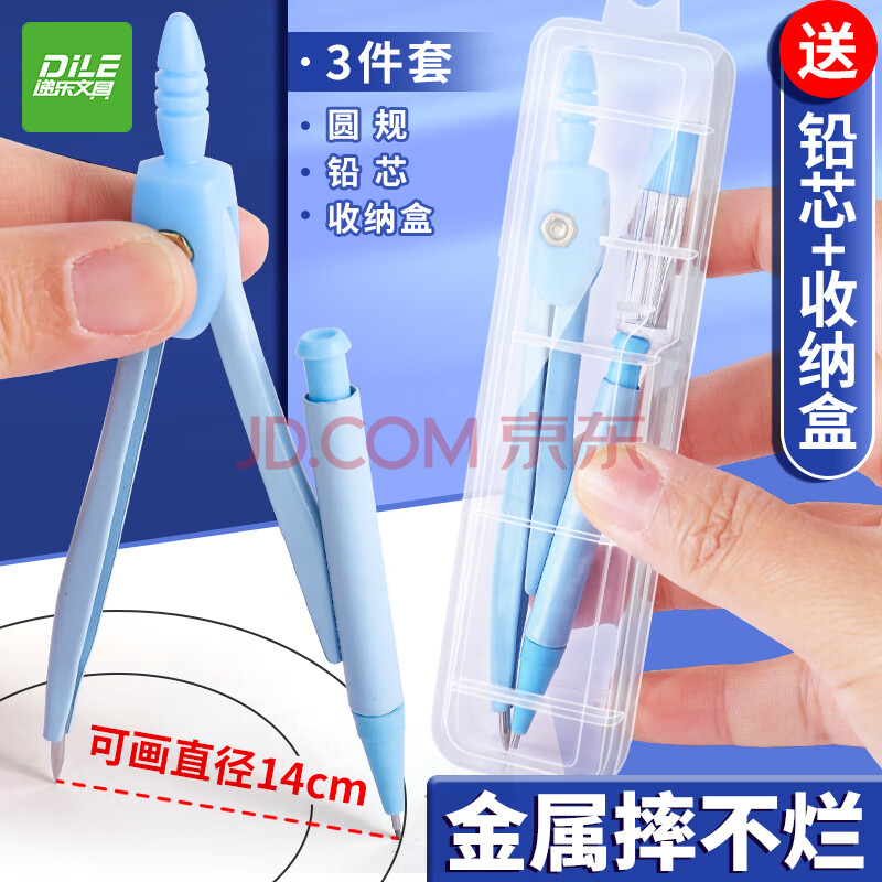 递乐 金属圆规套装小学生专业绘图工具切圆器分规初中生作图考试专用替芯文具画圆神器 20226蓝色