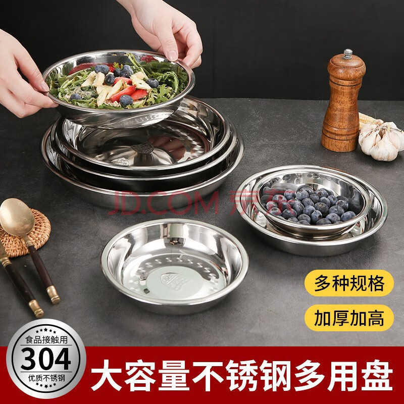 科野304不锈钢圆盘多用烧烤餐盘加深平底菜盘子食物托盘10个起批 14cm
