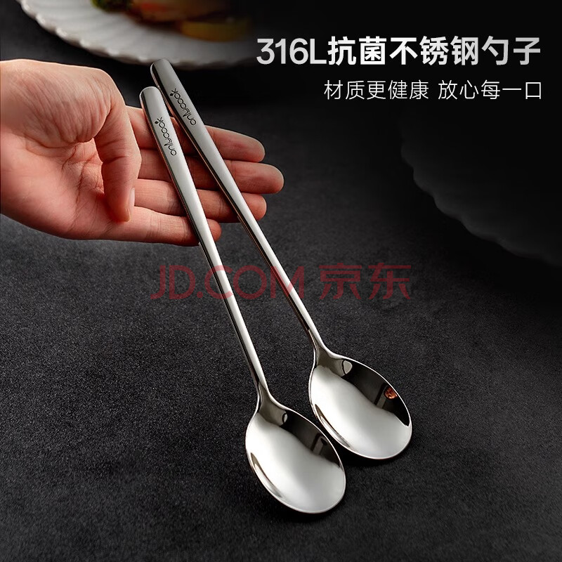 onlycook抗菌316L不锈钢勺子 食品级长柄汤匙 吃饭辅食勺小汤勺调羹