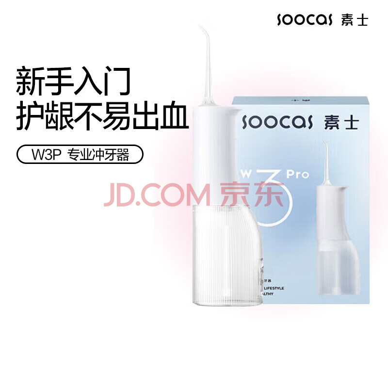 SOOCAS便携立式冲牙器 水牙线洗牙器口腔清洁洁牙器礼盒 W3Pro白 牙齿冲洗器