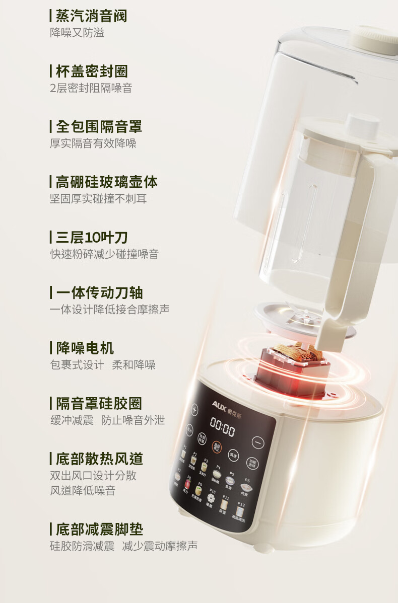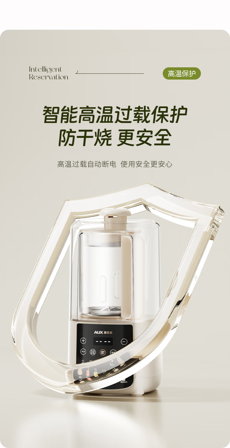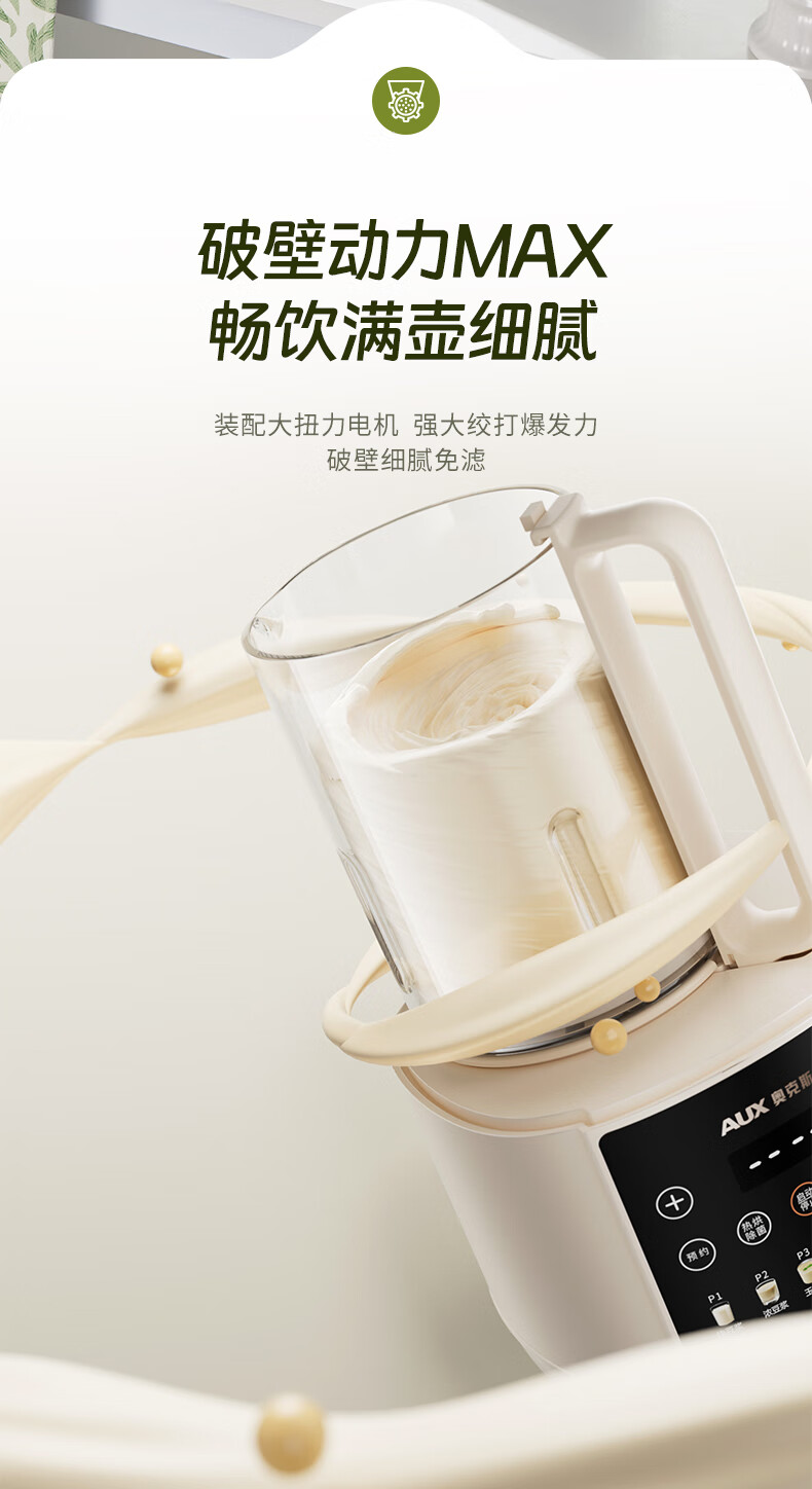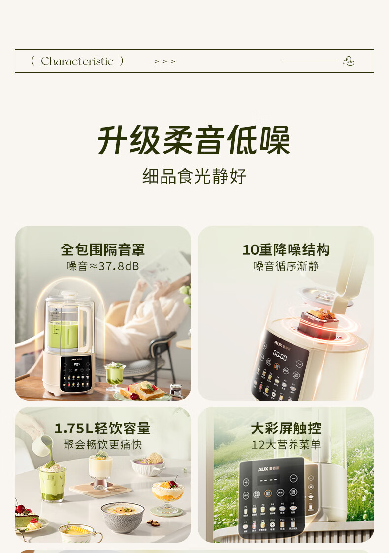 奥克斯(AUX)柔音破壁机全自动免煮五谷杂粮多功能加热家用豆浆机榨汁机全自动免煮1.75升5-6人APB-08APPZ12