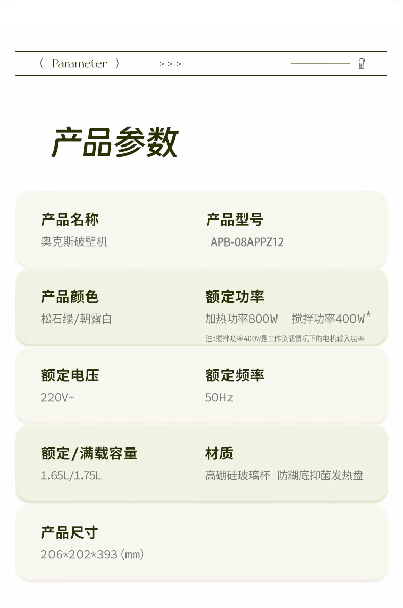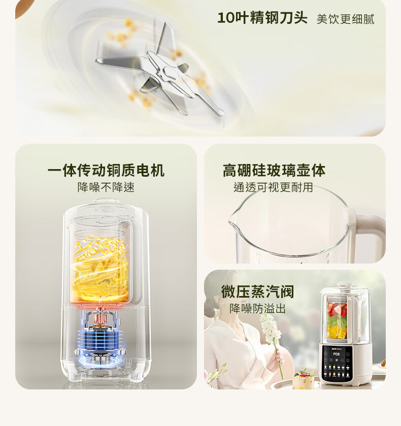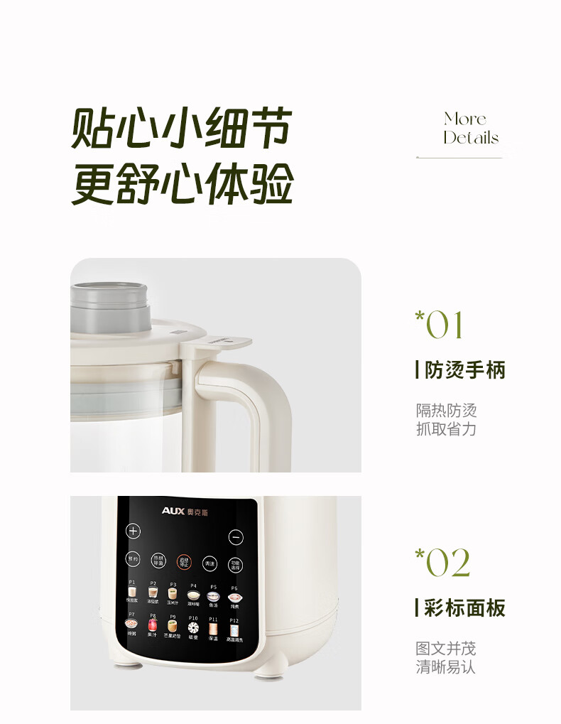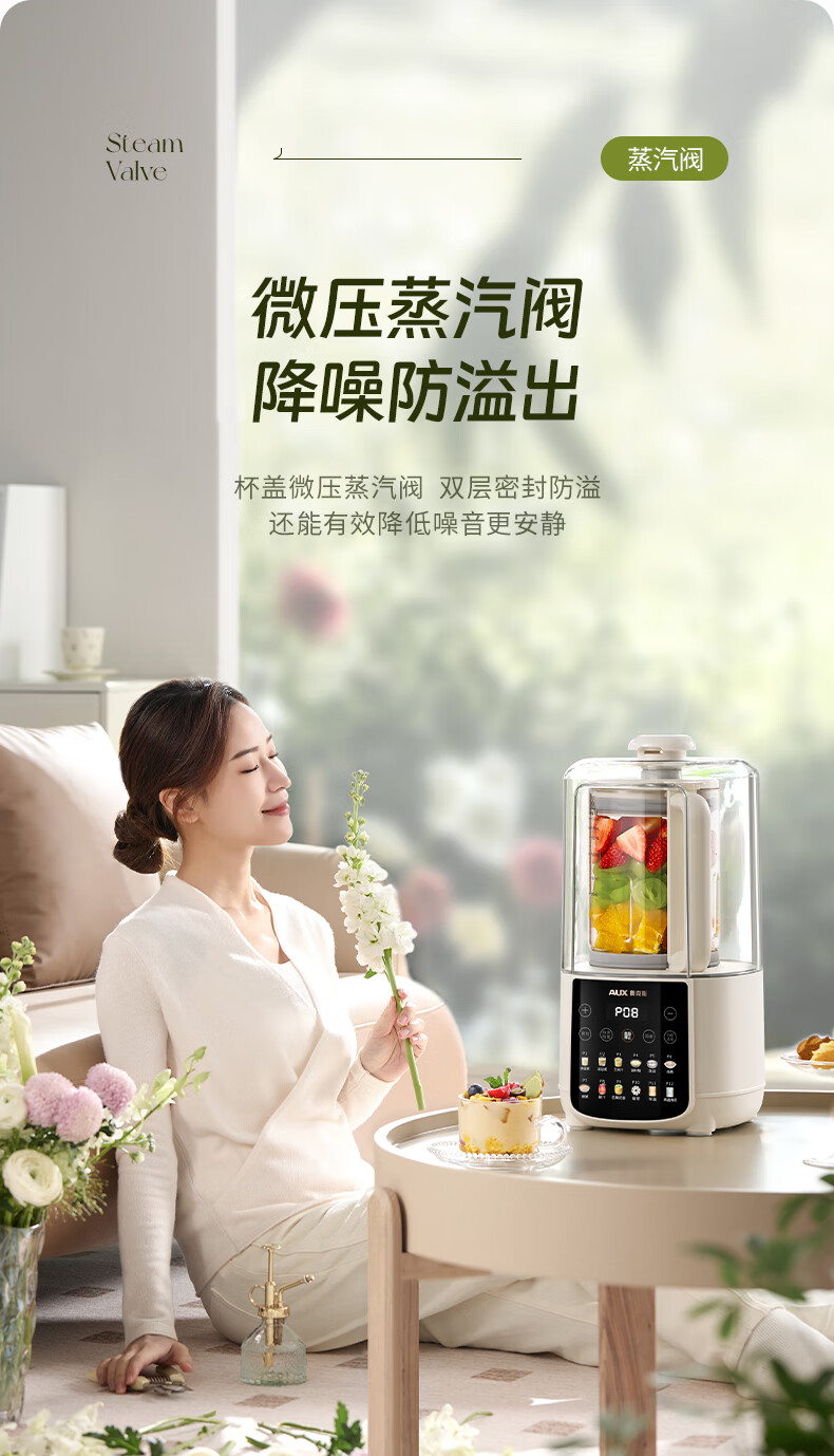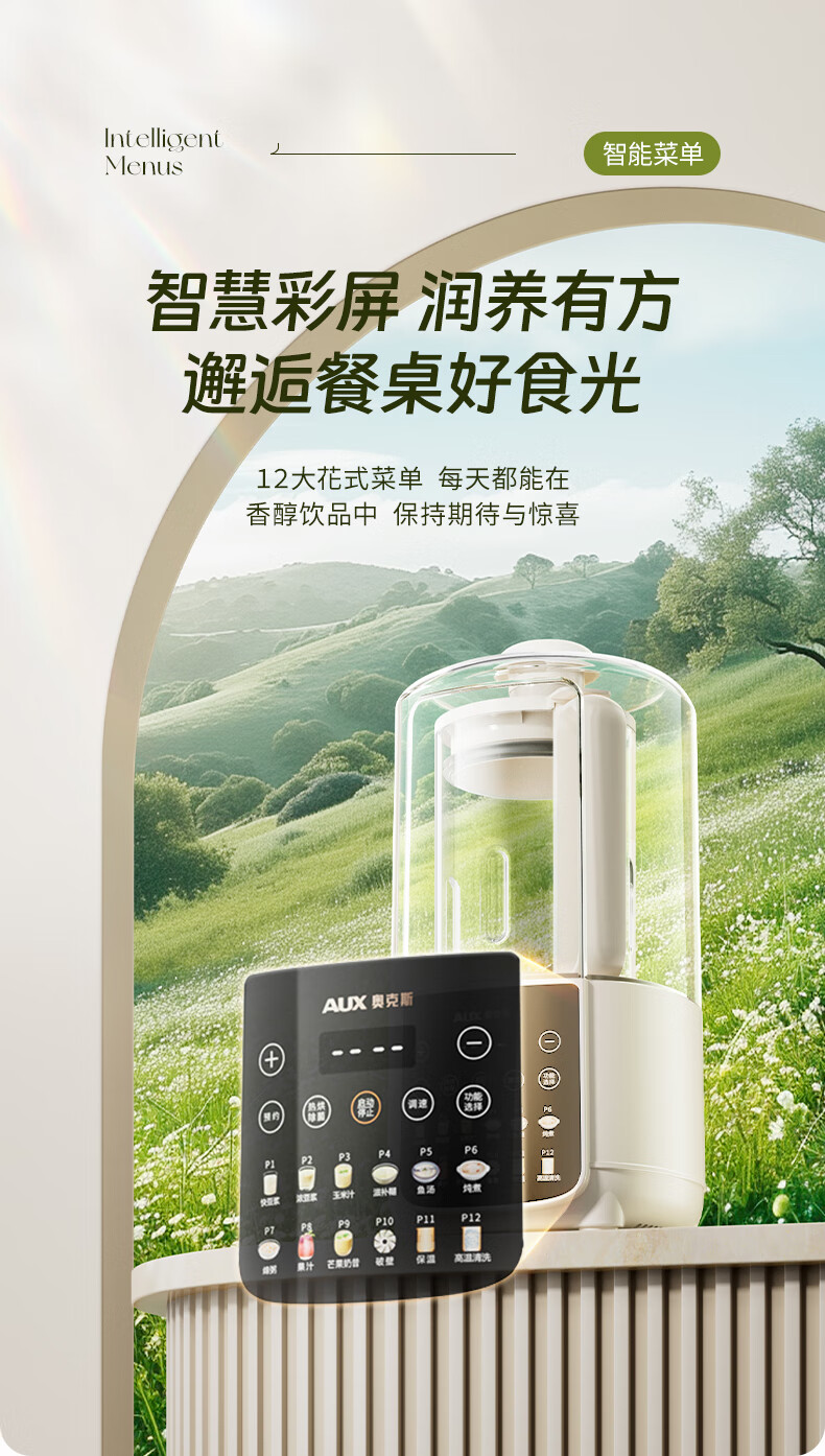奥克斯(AUX)柔音破壁机全自动免煮五谷杂粮多功能加热家用豆浆机榨汁机全自动免煮1.75升5-6人APB-08APPZ12