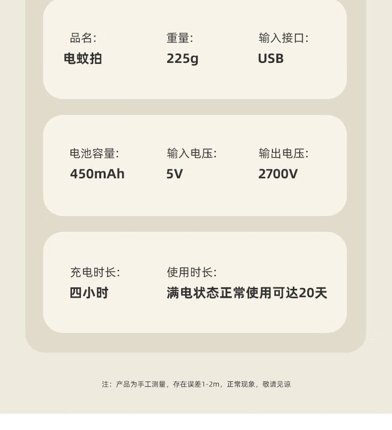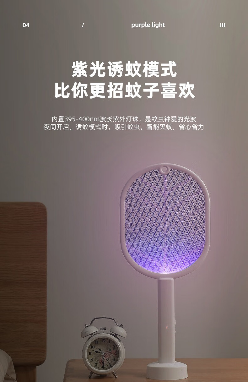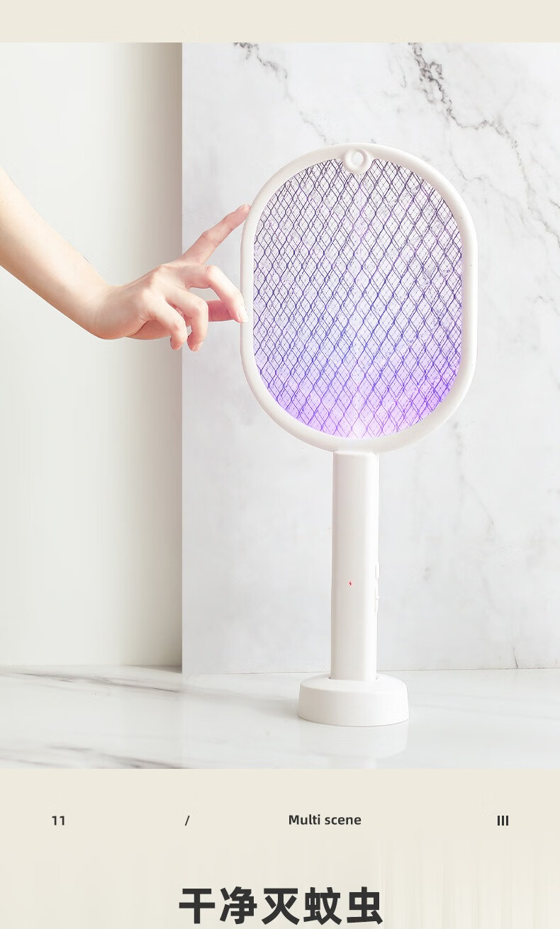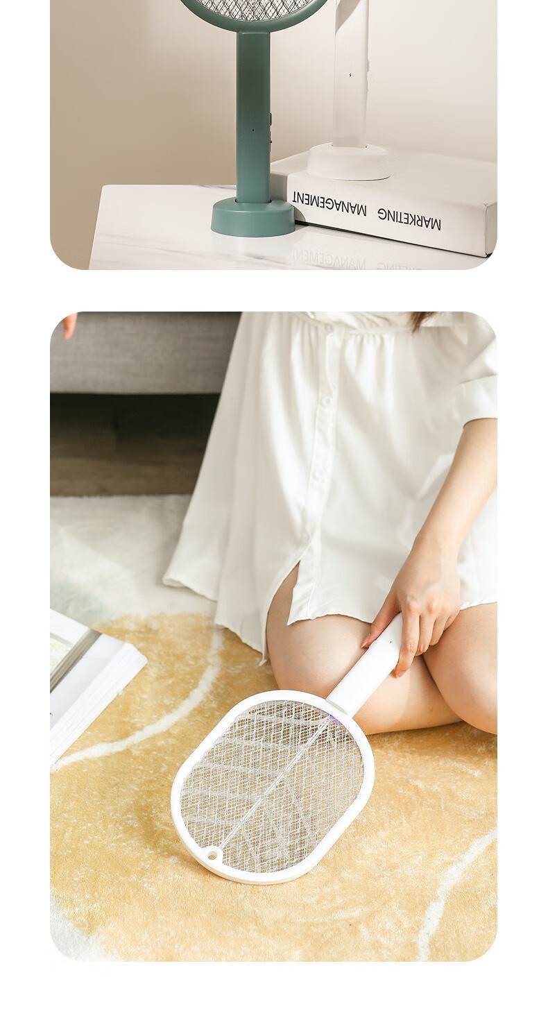 龙觇诱蚊家用二合一电蚊拍USB灭蚊拍电击灭蚊灯驱蚊器 白叶电蚊拍