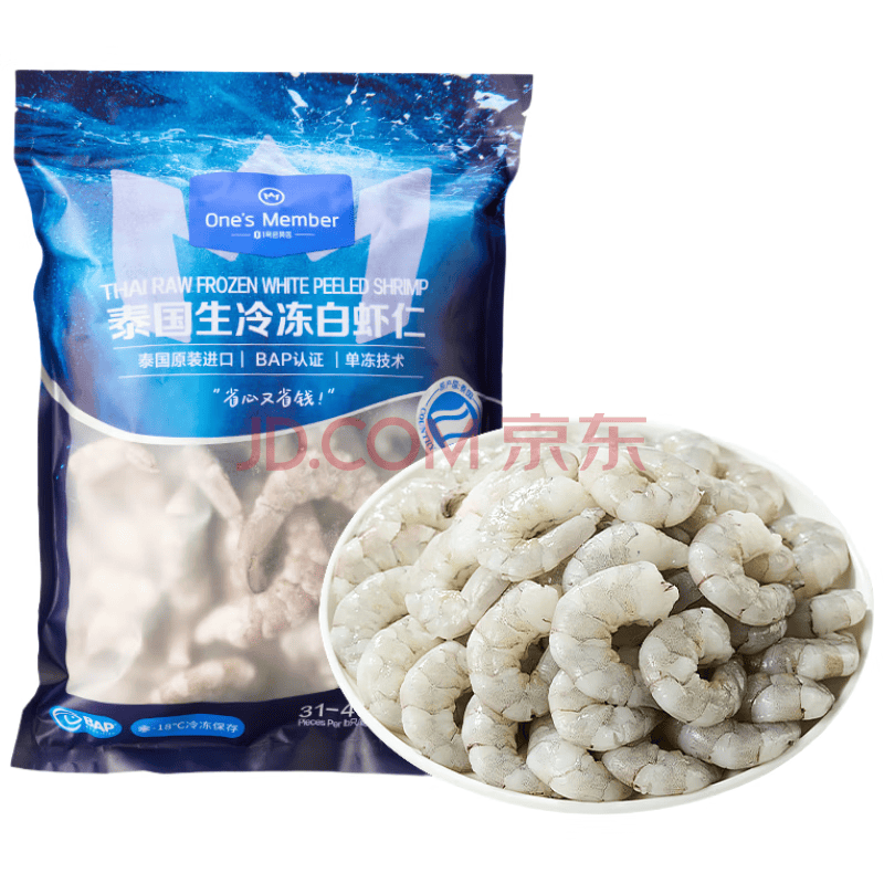 1号会员店泰国原装进口白虾仁 0添加保水剂 低脂去虾线 908G(60-80只)