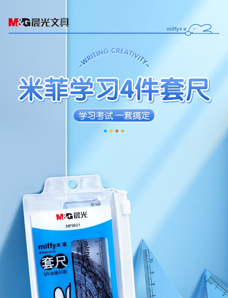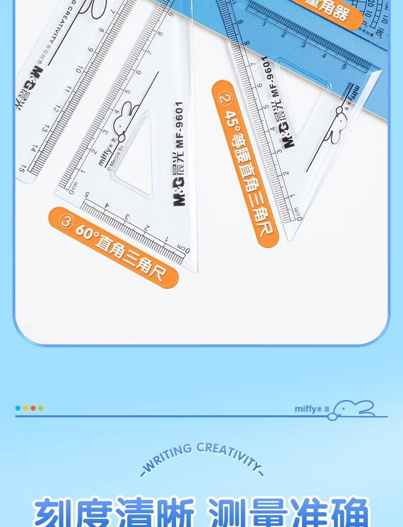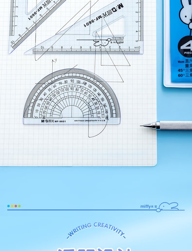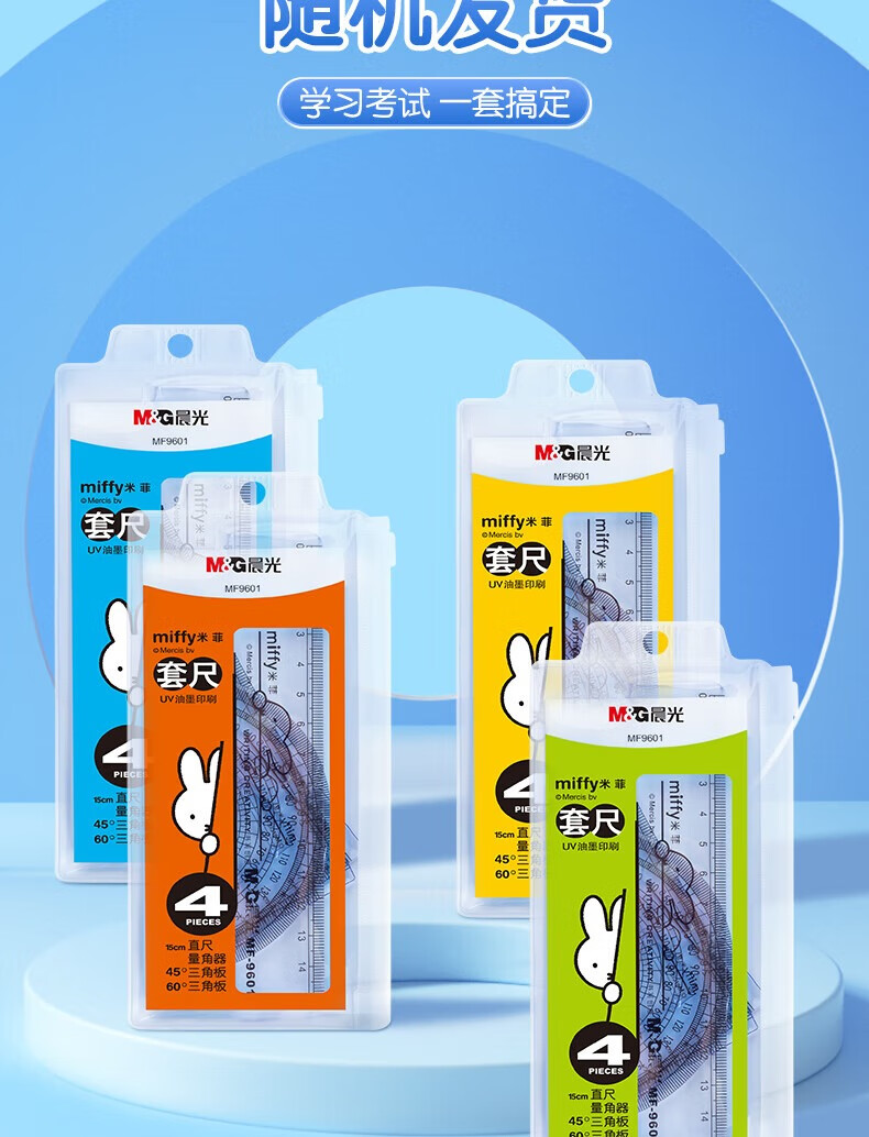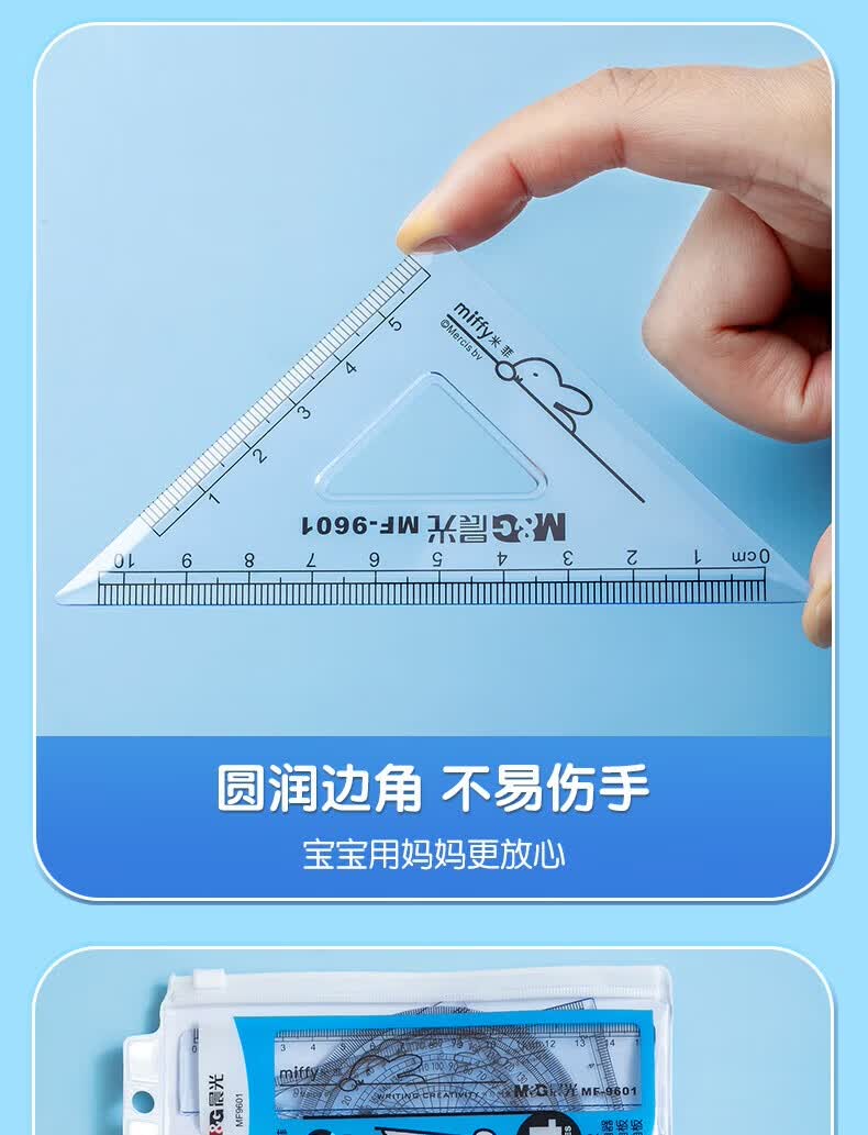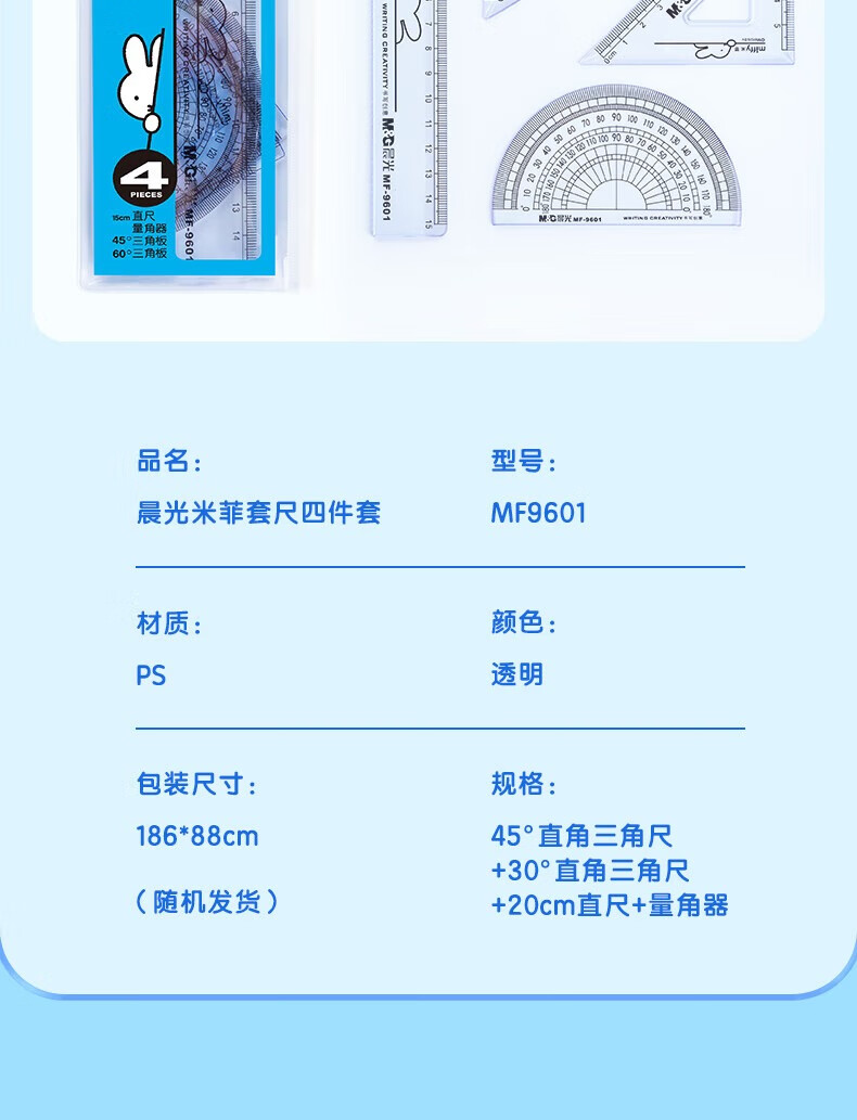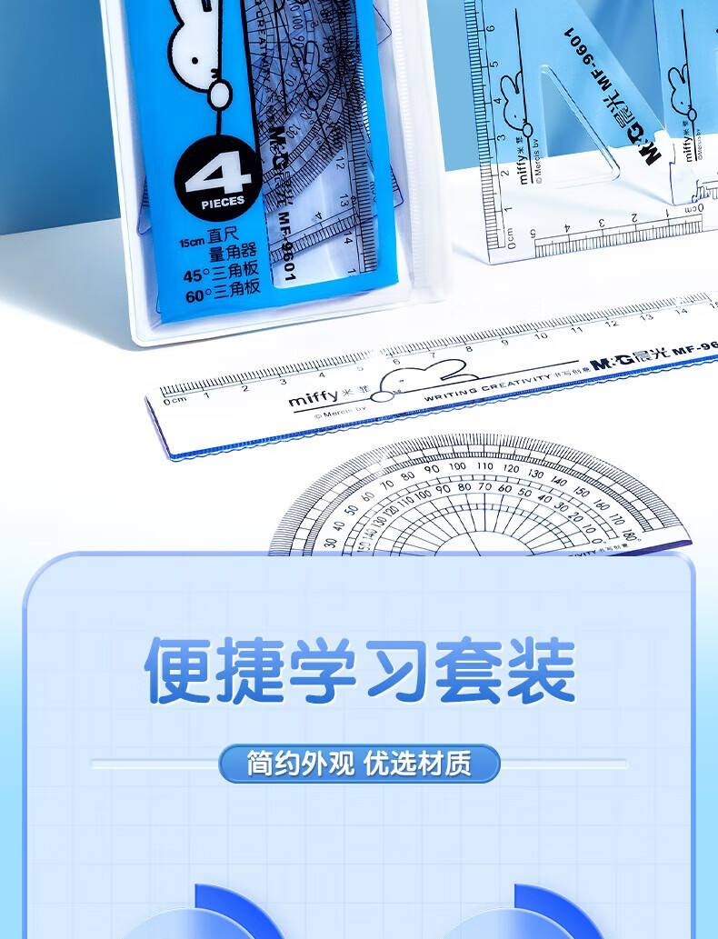 晨光(M&G)米菲套尺尺子套装小学生考试 4件套(直尺15cm+三角尺*2+量角器)MF9601中考高考
