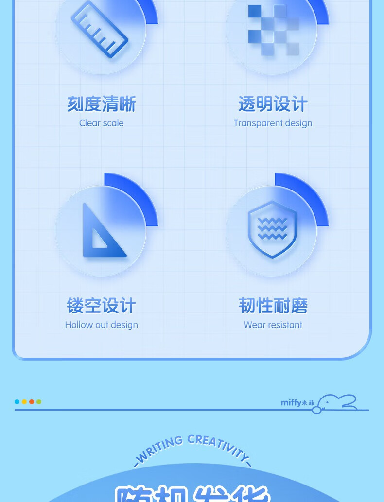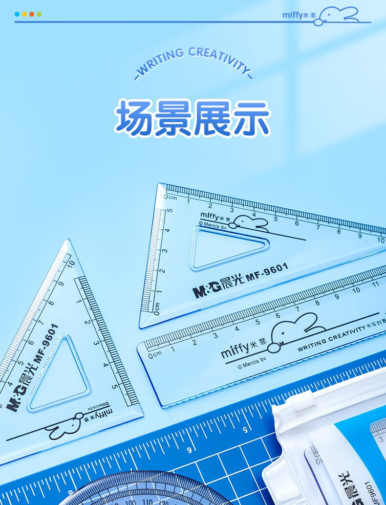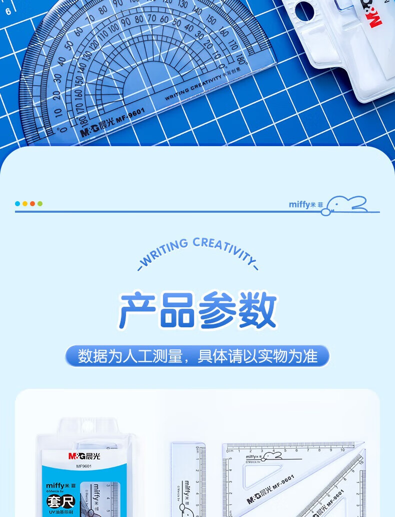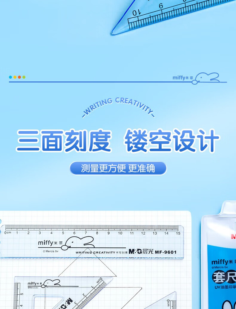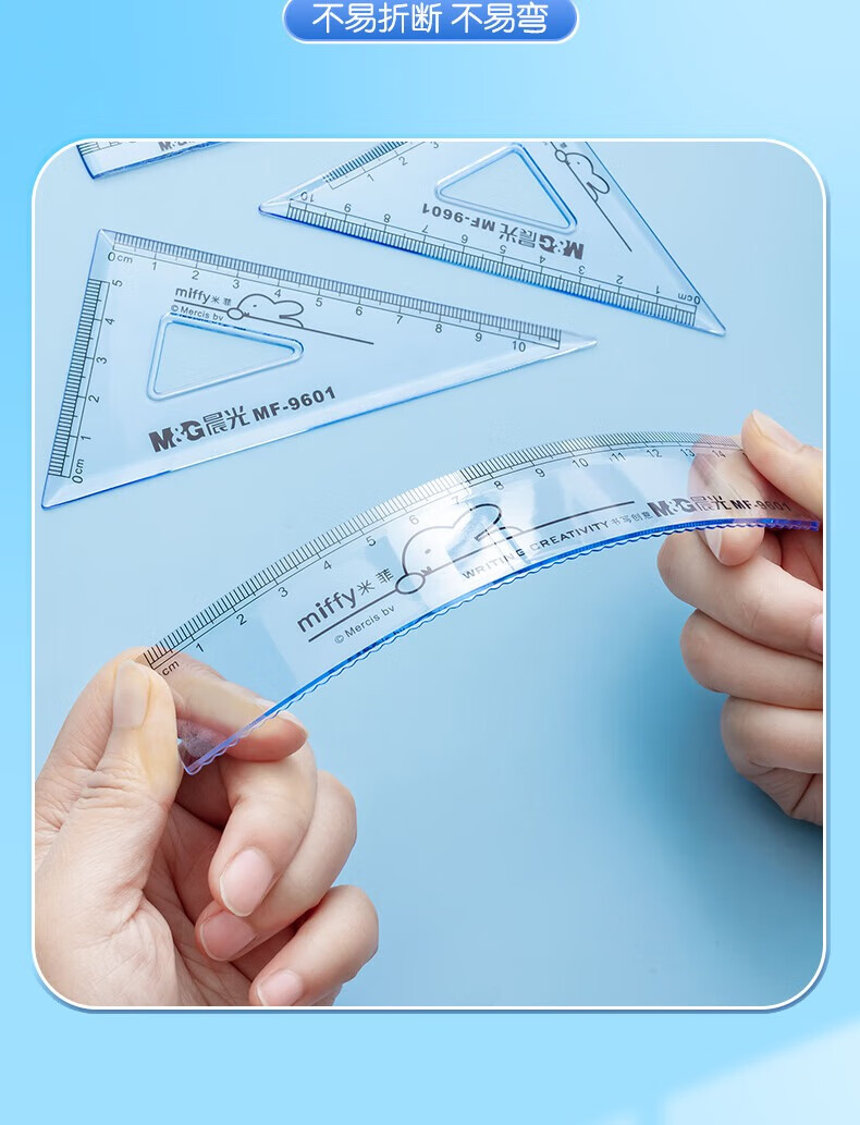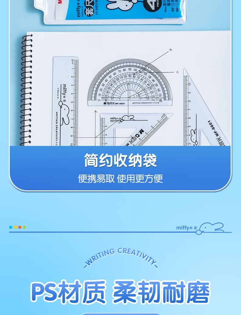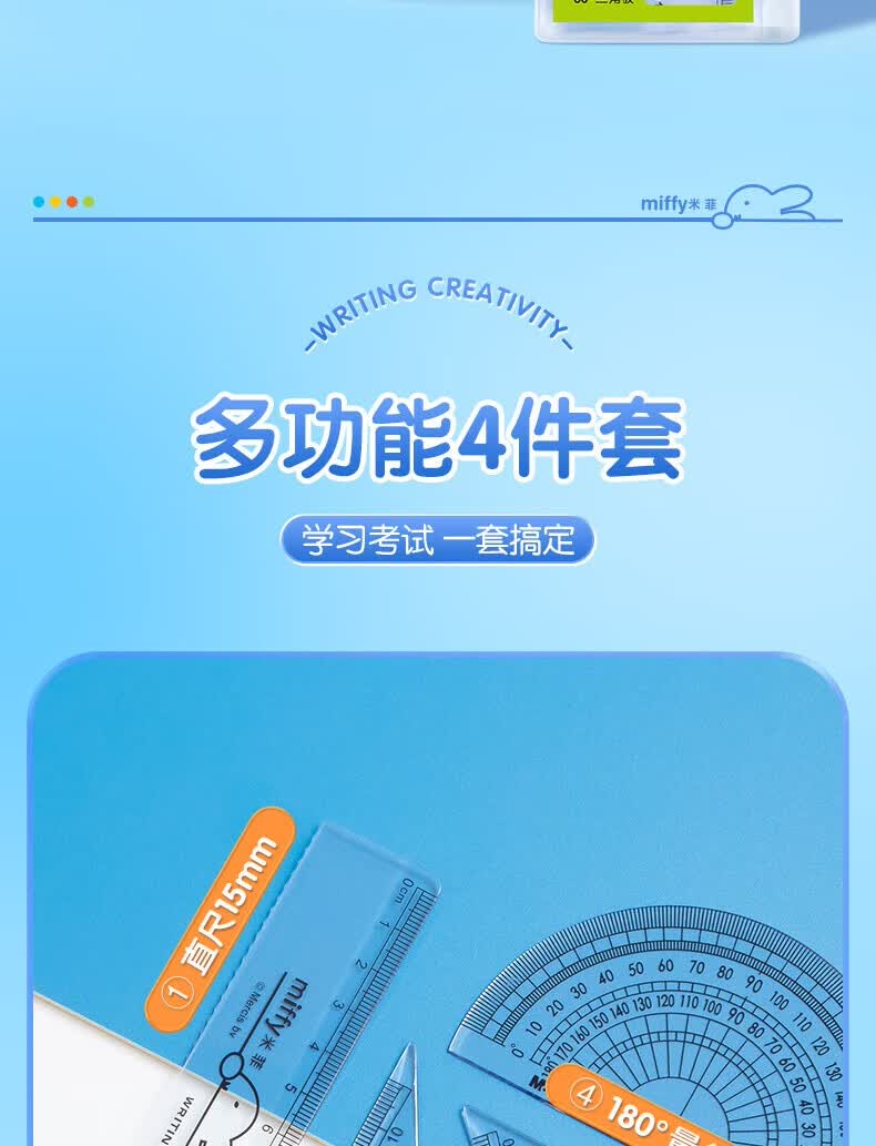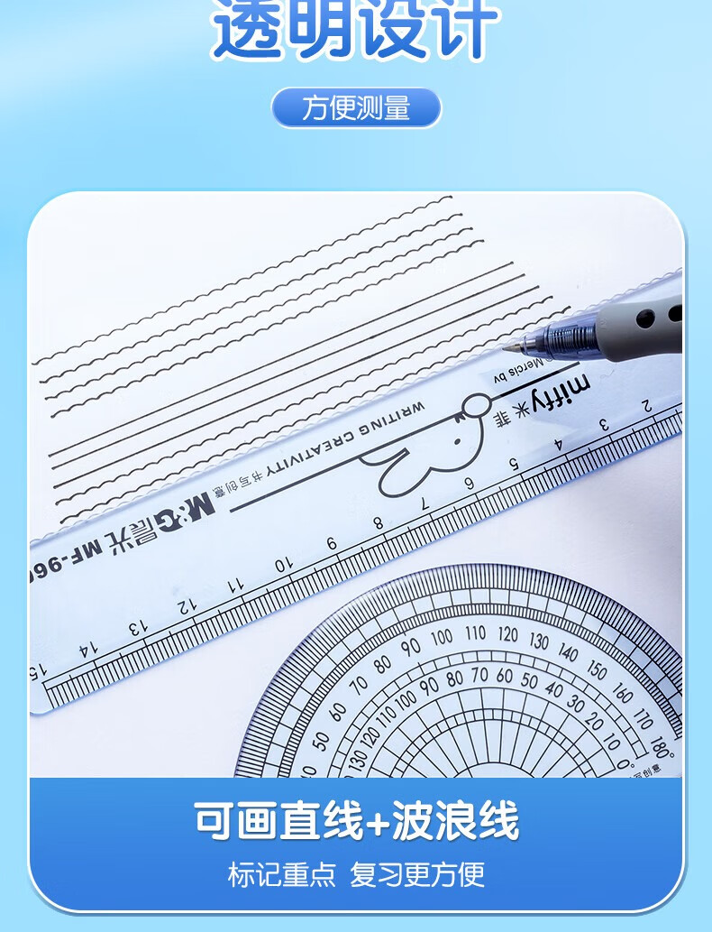 晨光(M&G)米菲套尺尺子套装小学生考试 4件套(直尺15cm+三角尺*2+量角器)MF9601中考高考