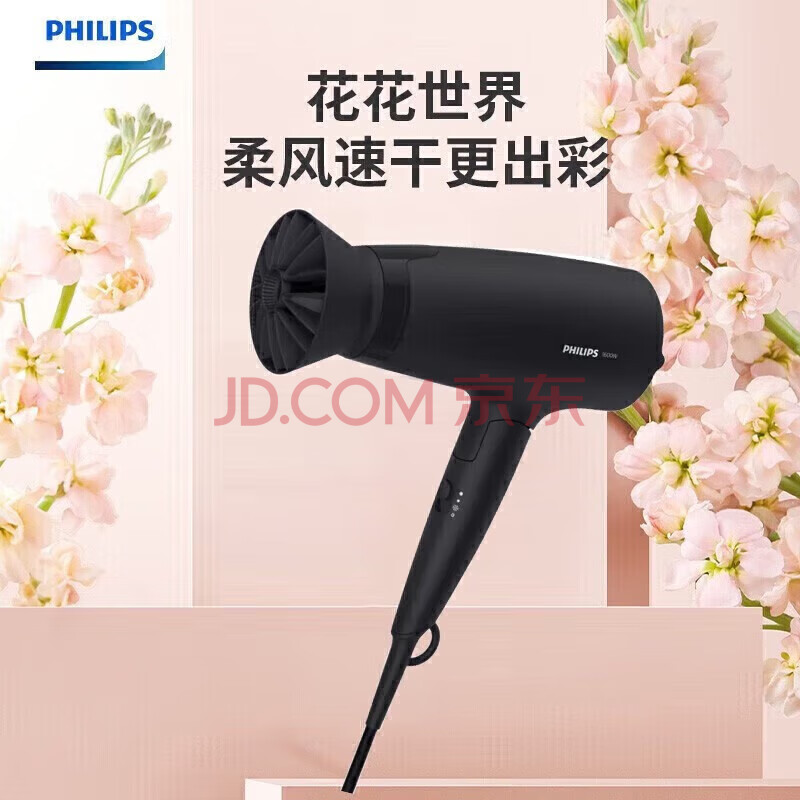 飞利浦(PHILIPS)BHD356/45 负离子恒温护发家用速干可折叠温柔小花筒吹风机