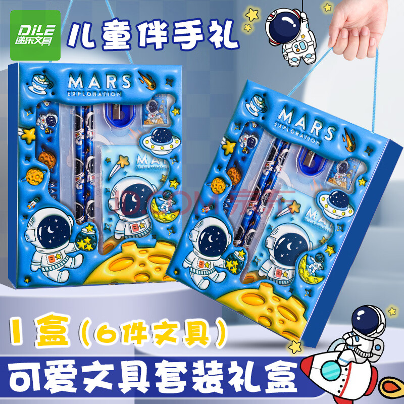 递乐立体感卡通文具儿童节礼物套装六件套小学生伴手礼开学礼物活动期中奖品铅笔套装 0030-宇航员