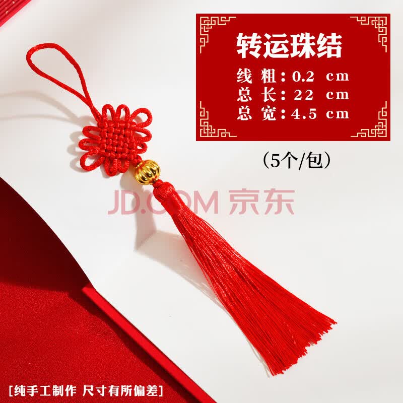 鑫庆余中国结挂件小号装饰手工同心结平安结扣挂绳红色2025流苏穗子挂饰-5个/包