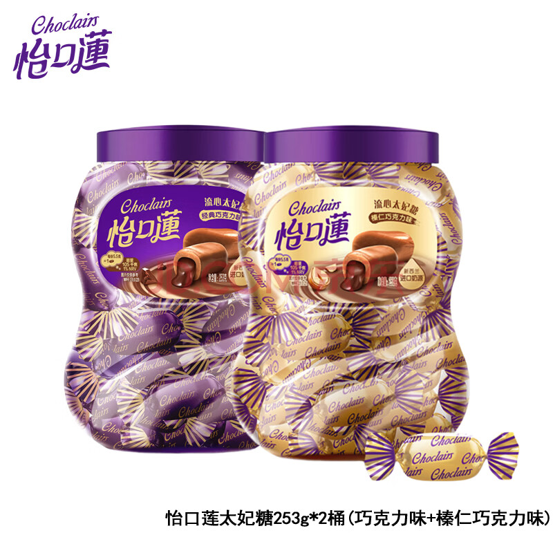 怡口莲 太妃糖253g*2桶 (巧克力味+榛仁巧克力味) 零食喜糖结婚零食