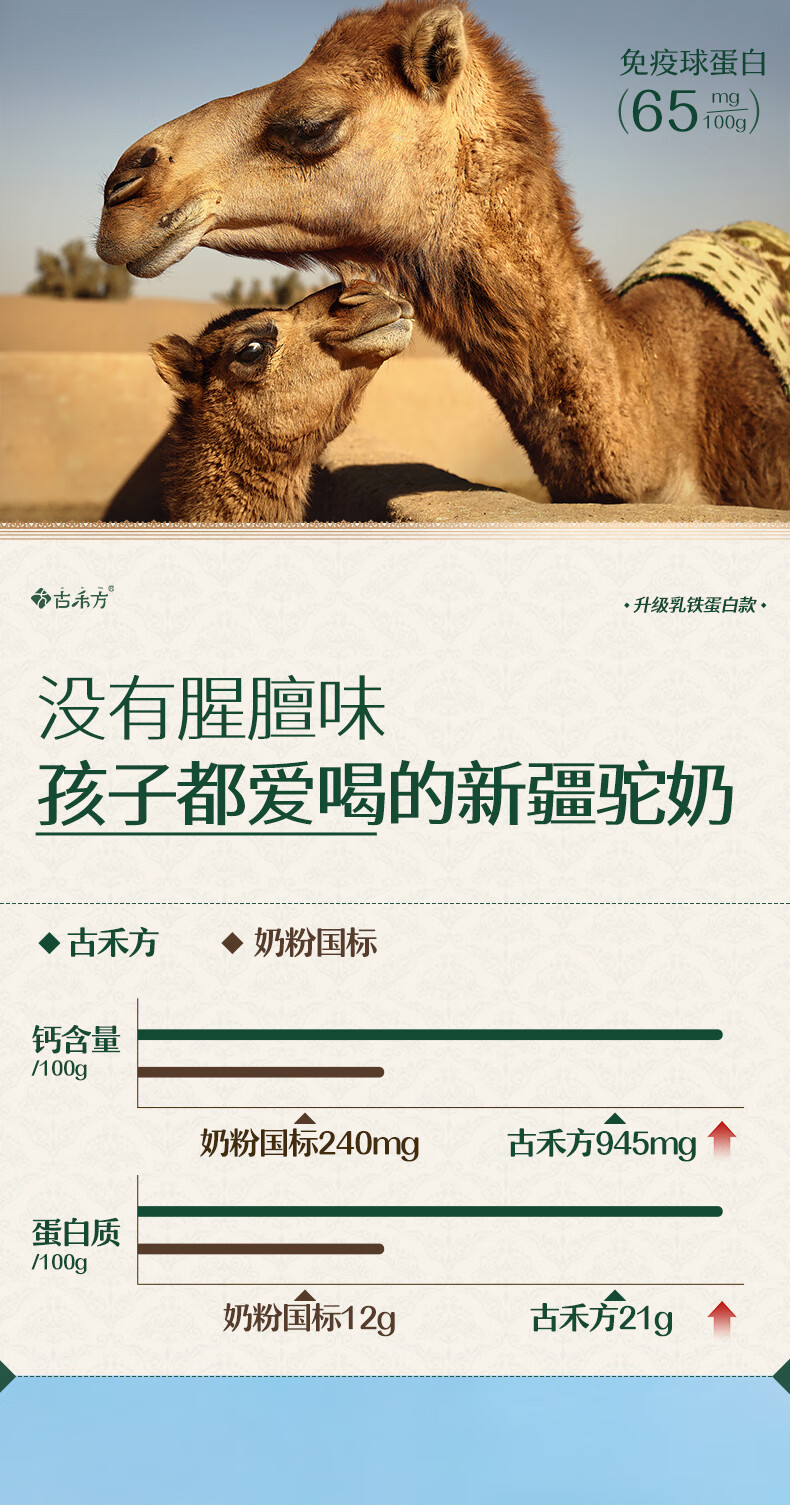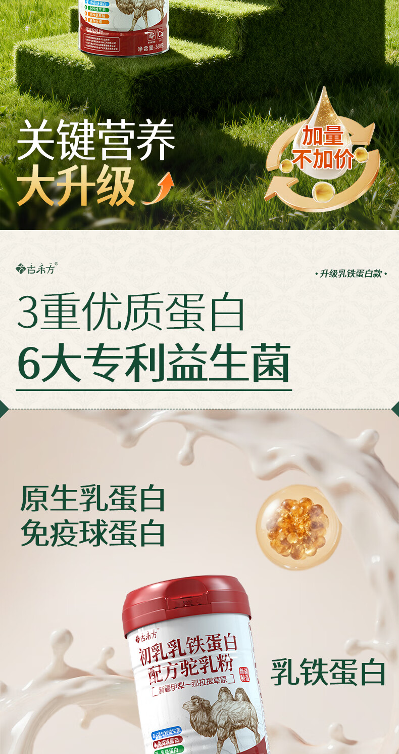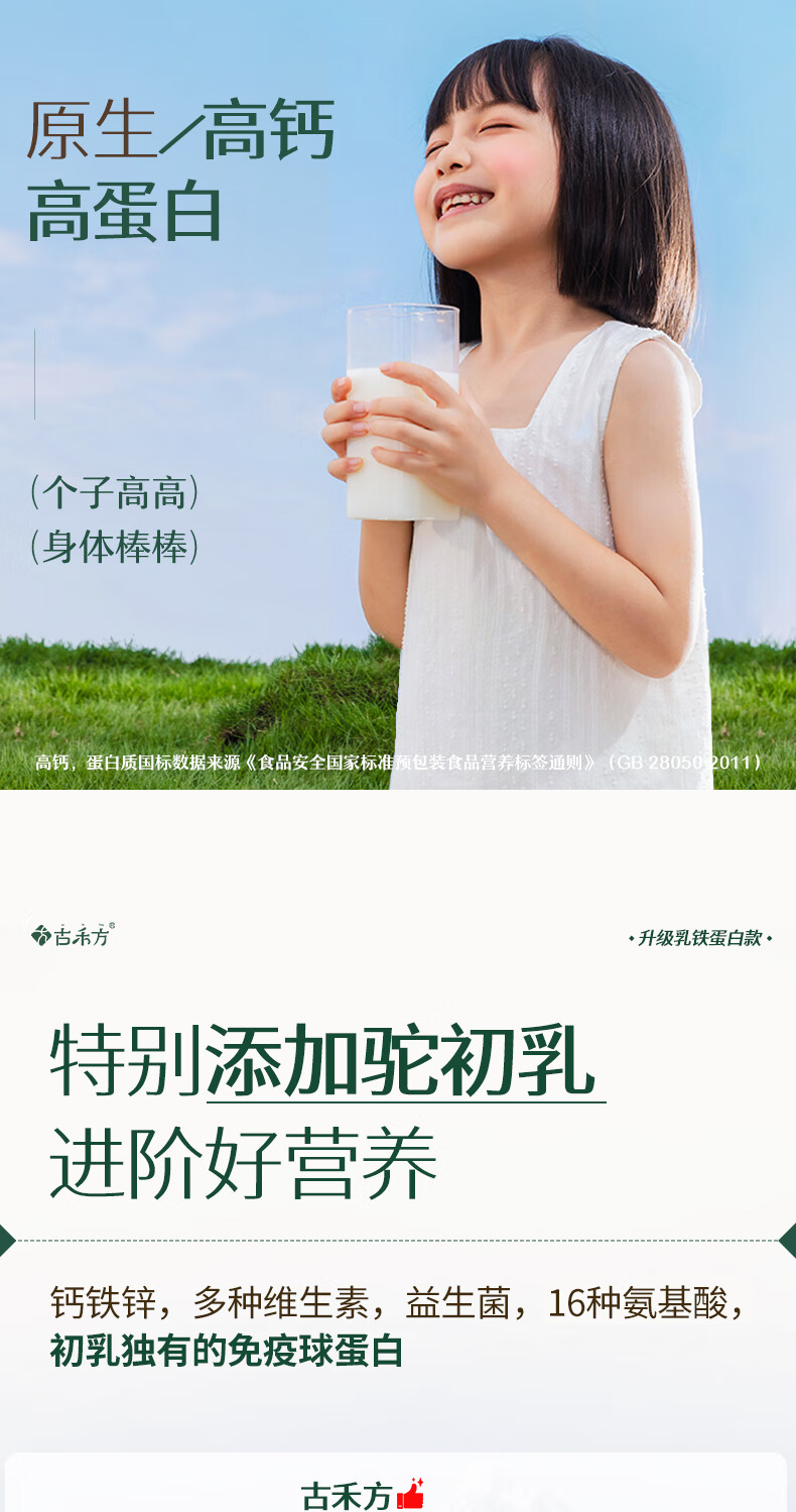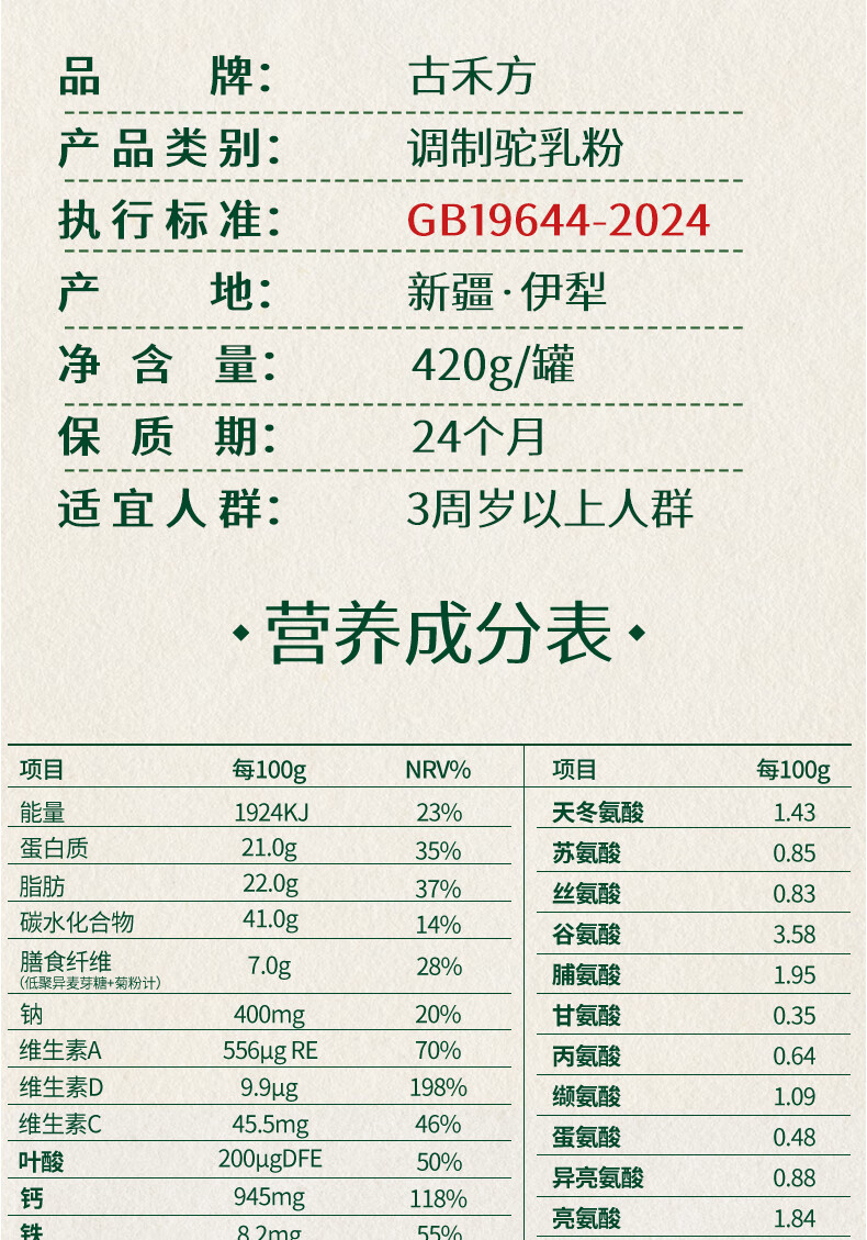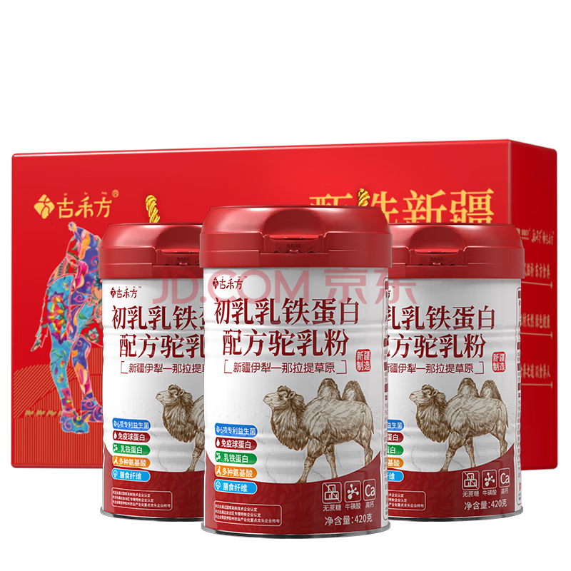 古禾方骆驼奶粉正宗新疆特产正品驼奶老年人无蔗糖年货送礼420g3罐礼盒