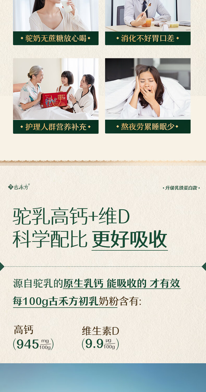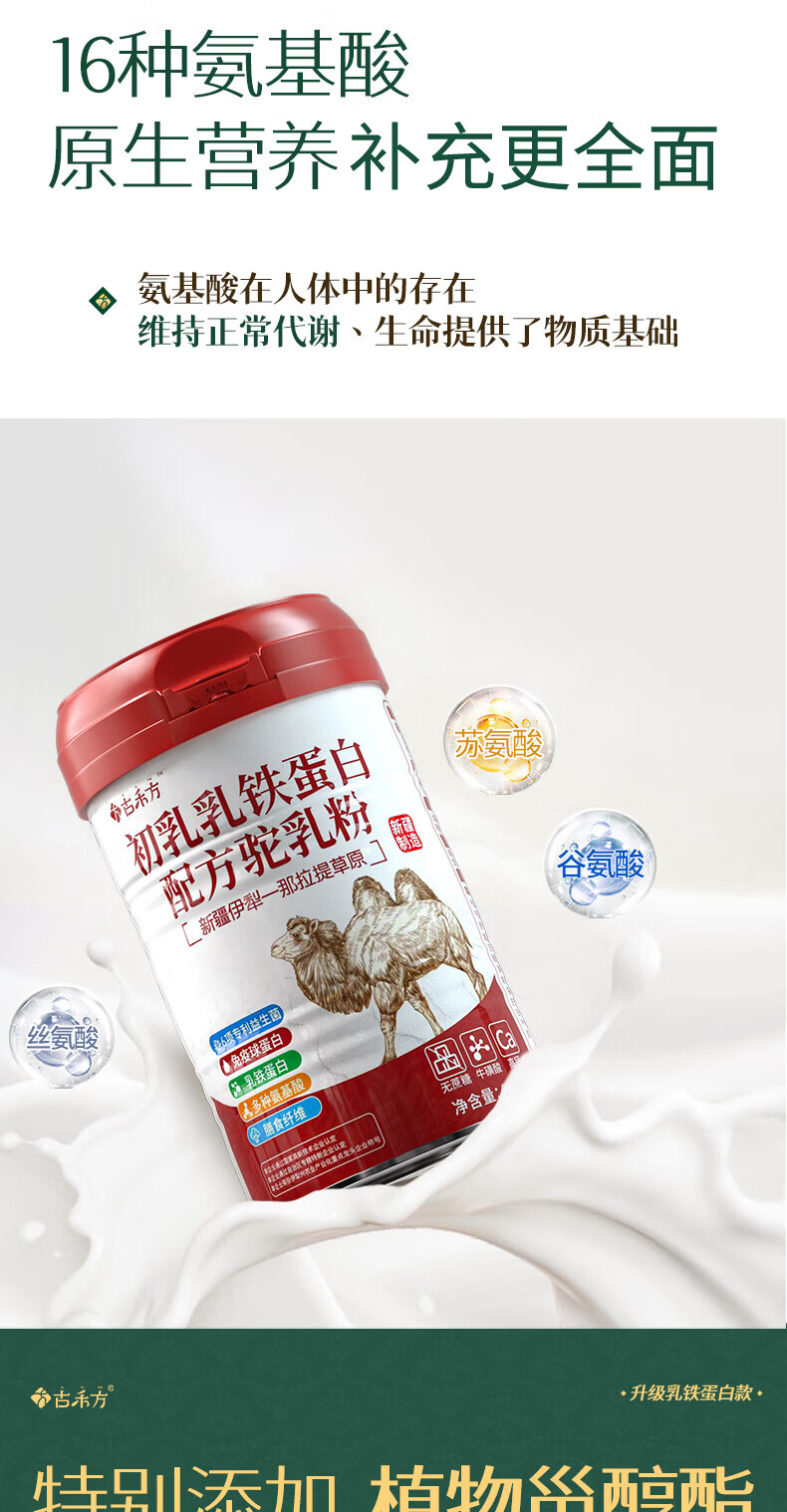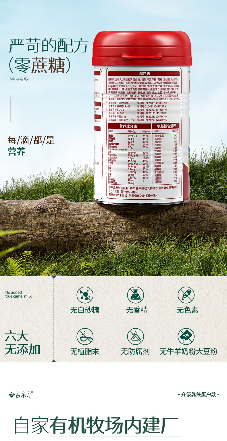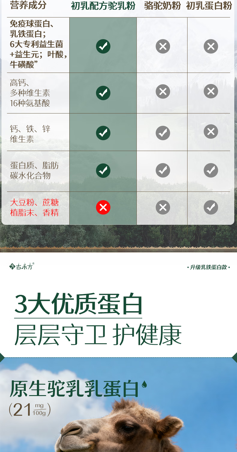 古禾方骆驼奶粉正宗新疆特产正品驼奶老年人无蔗糖年货送礼420g3罐礼盒