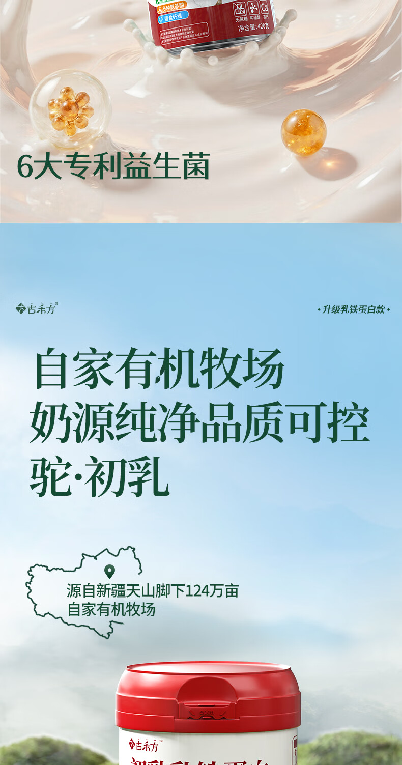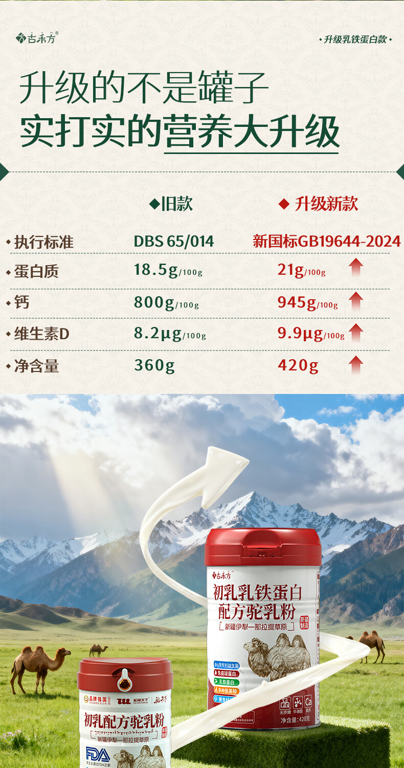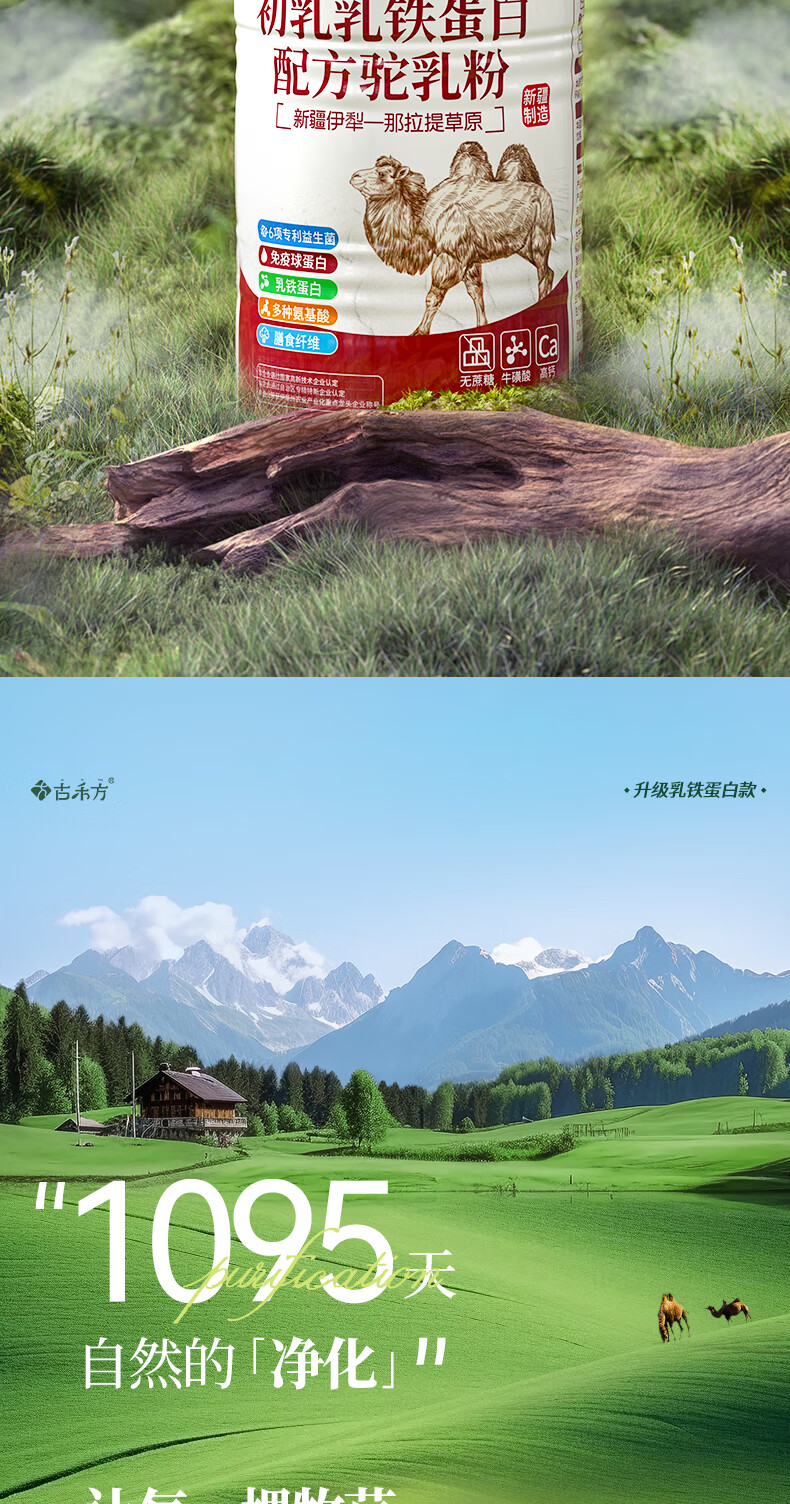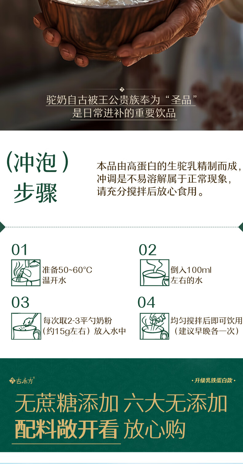 古禾方骆驼奶粉正宗新疆特产正品驼奶老年人无蔗糖年货送礼420g3罐礼盒