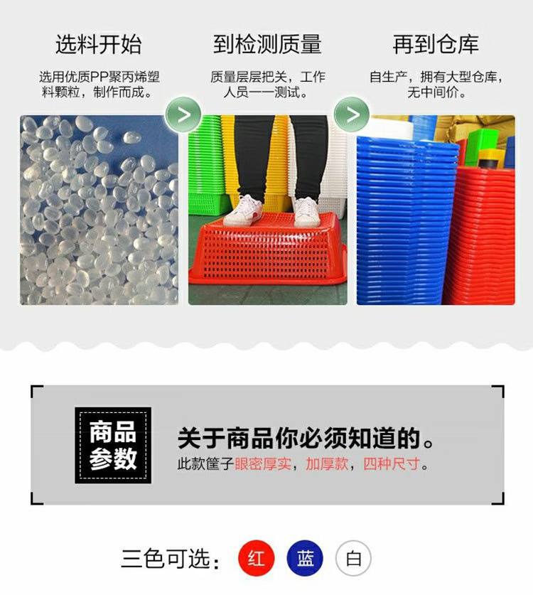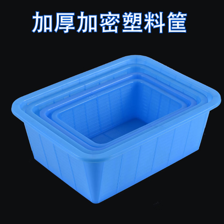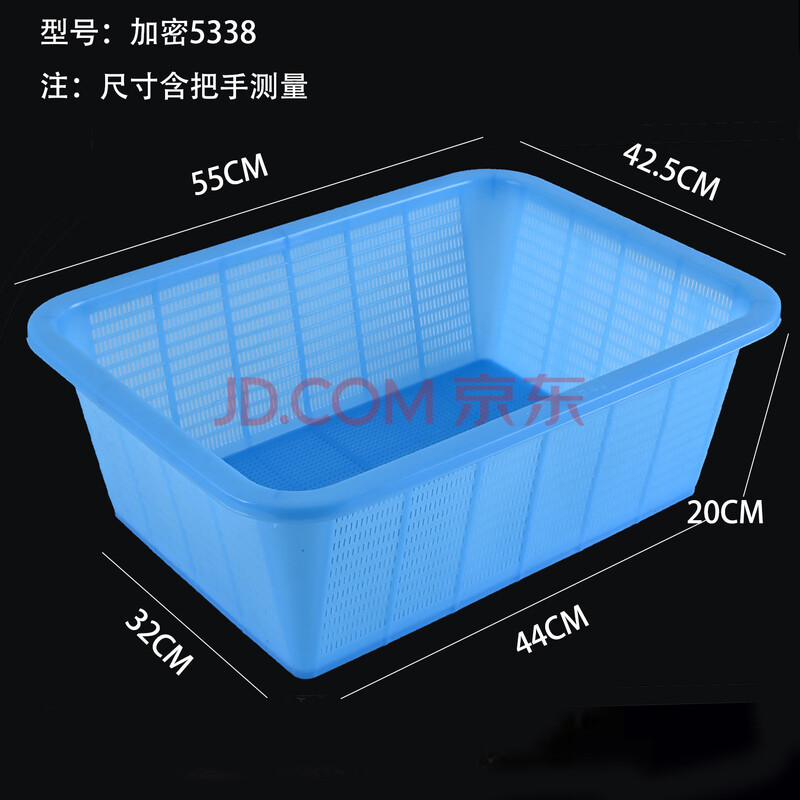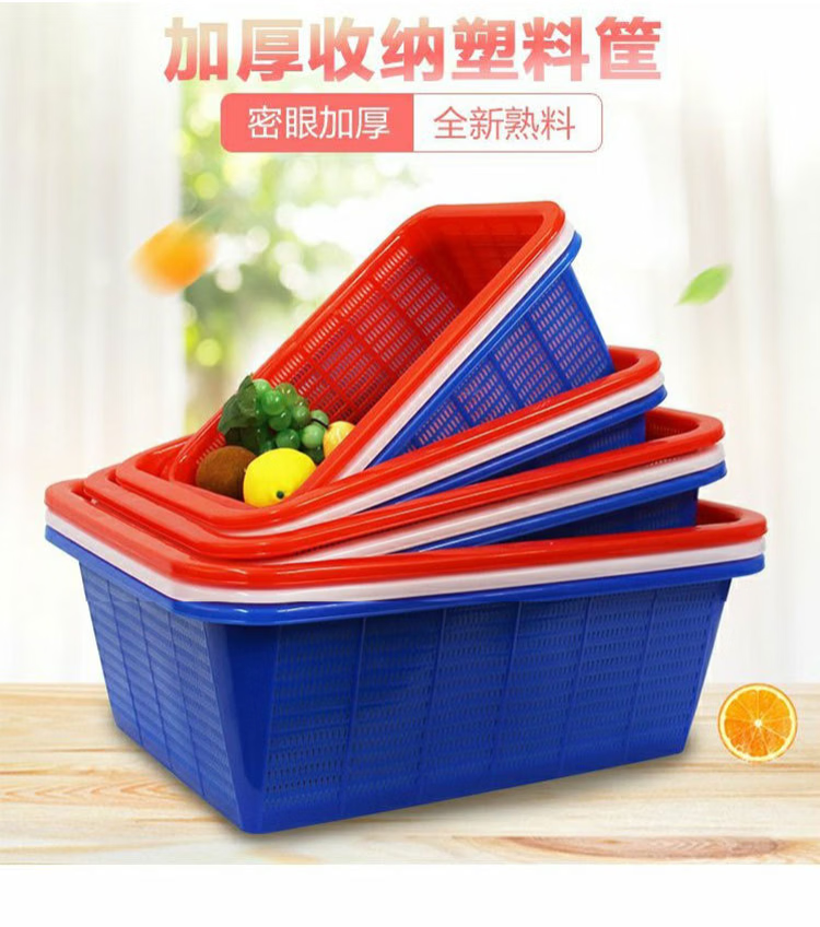 豫宙加密塑料篮子加厚长方形收纳框厨房沥水篮洗菜篮水果篮 蓝色:54*42*19