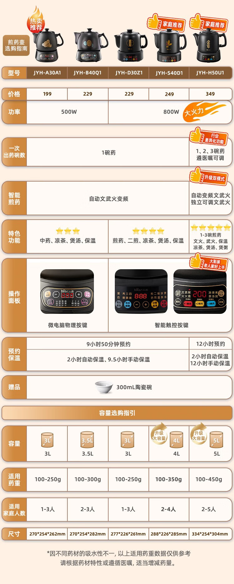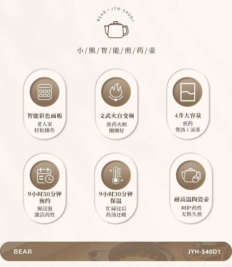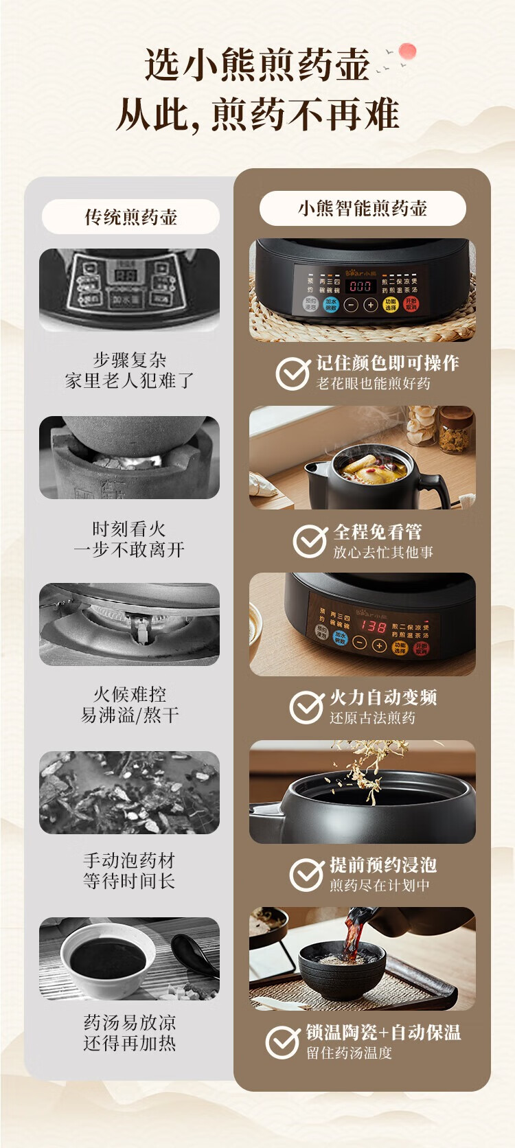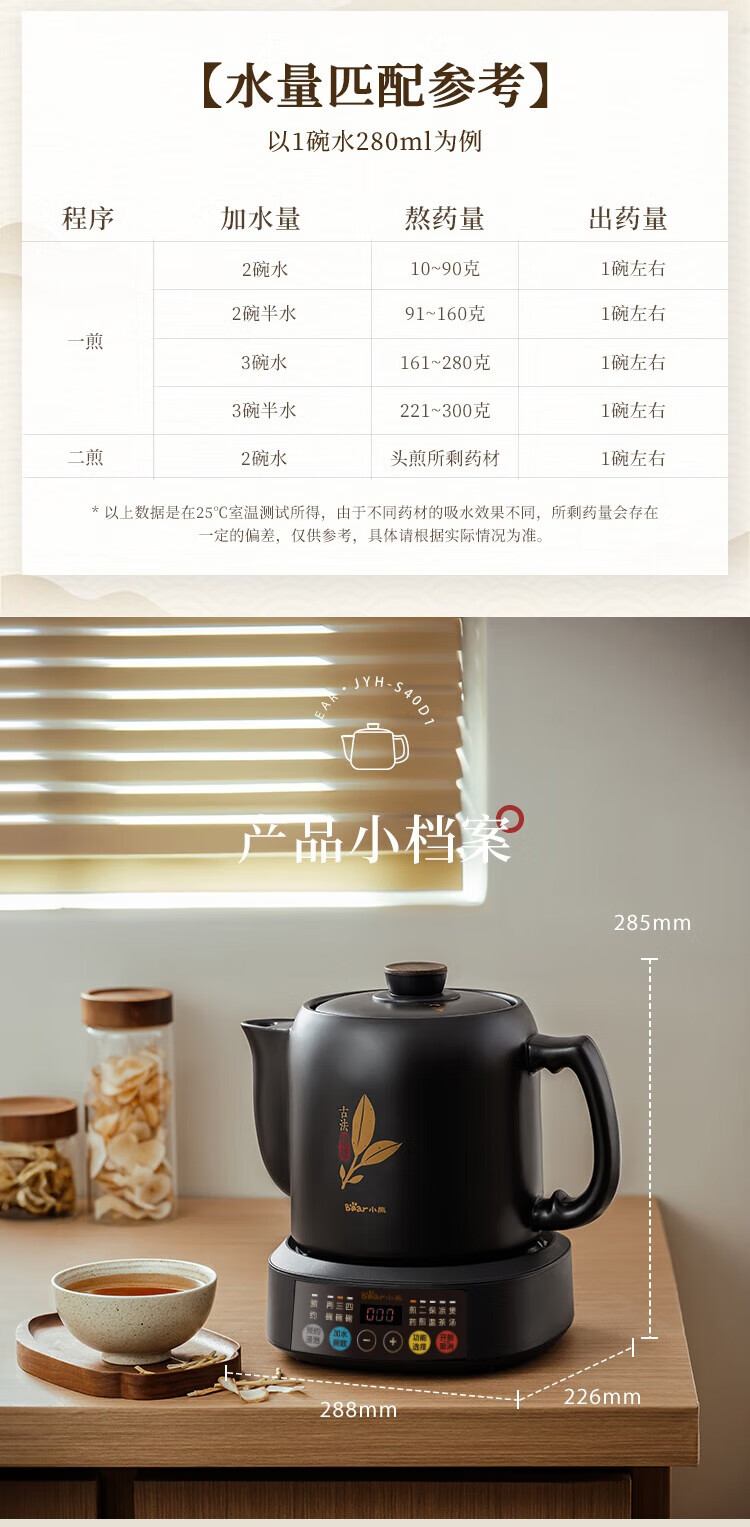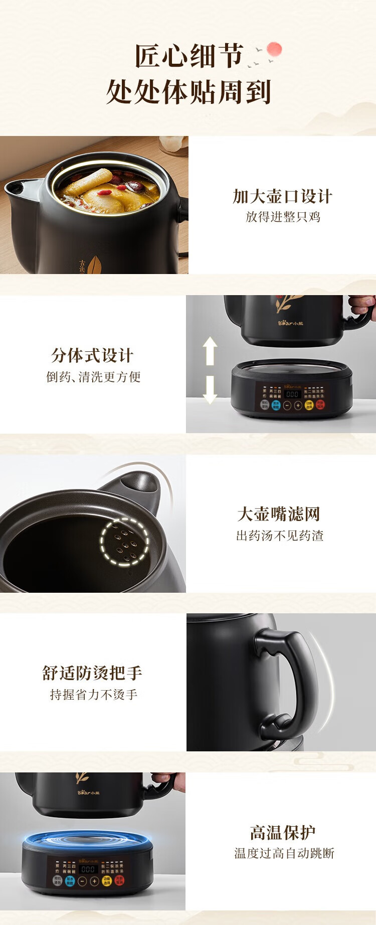 小熊 全自动免看管中药锅 家用分体式陶瓷药罐熬药壶 JYH-S40D1