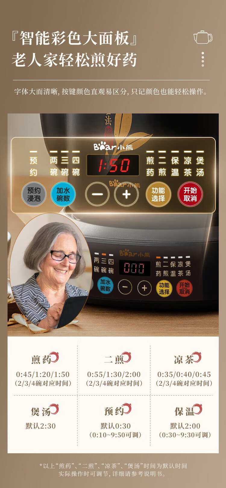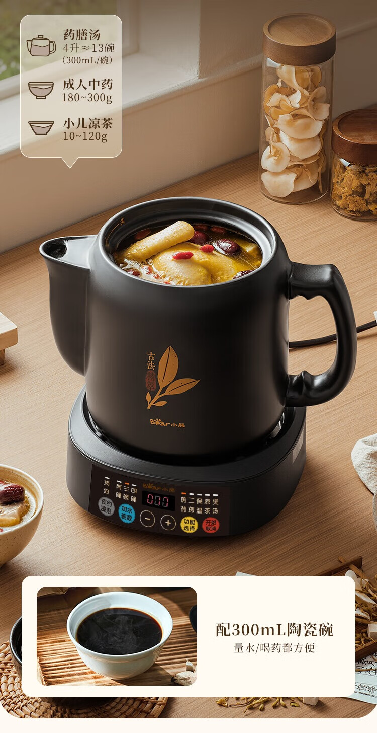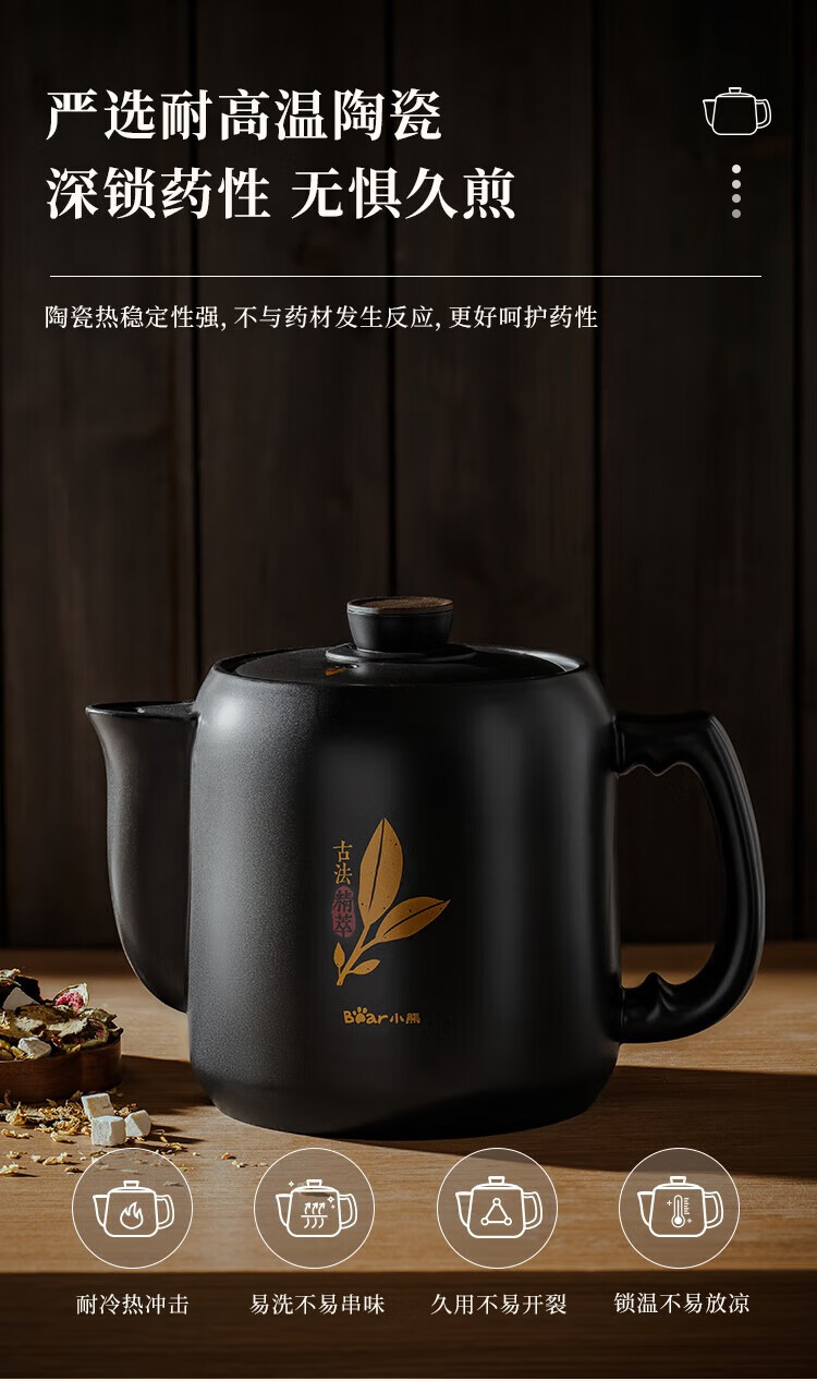 小熊(Bear)中药锅煎药壶 3.5L中药壶全自动熬药砂锅药罐中药煲电药壶电药锅 煲药熬药锅陶瓷JYH-B40Q1