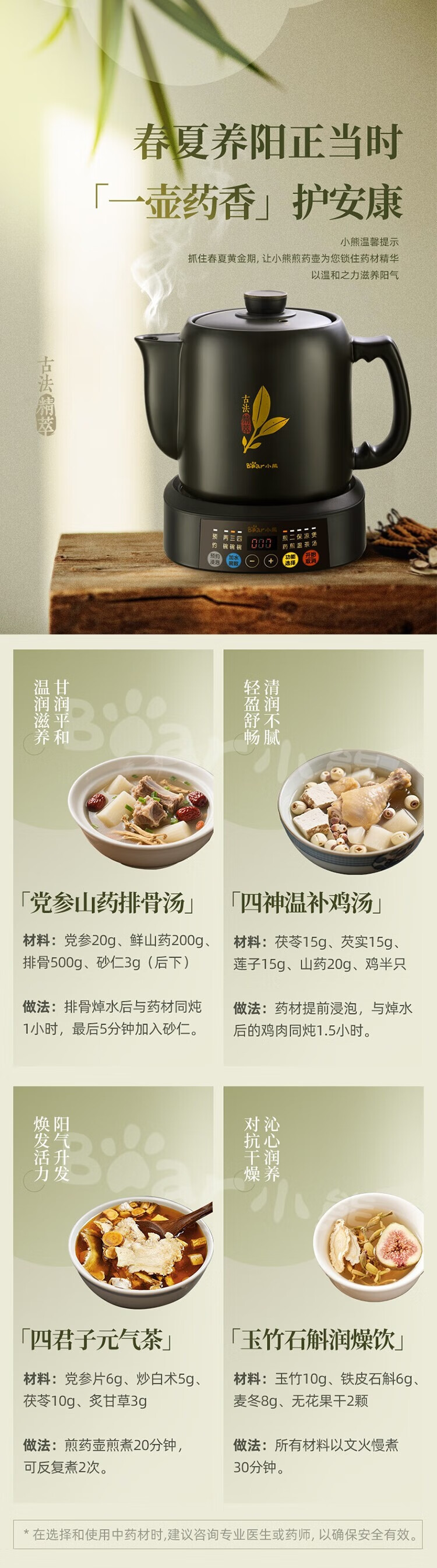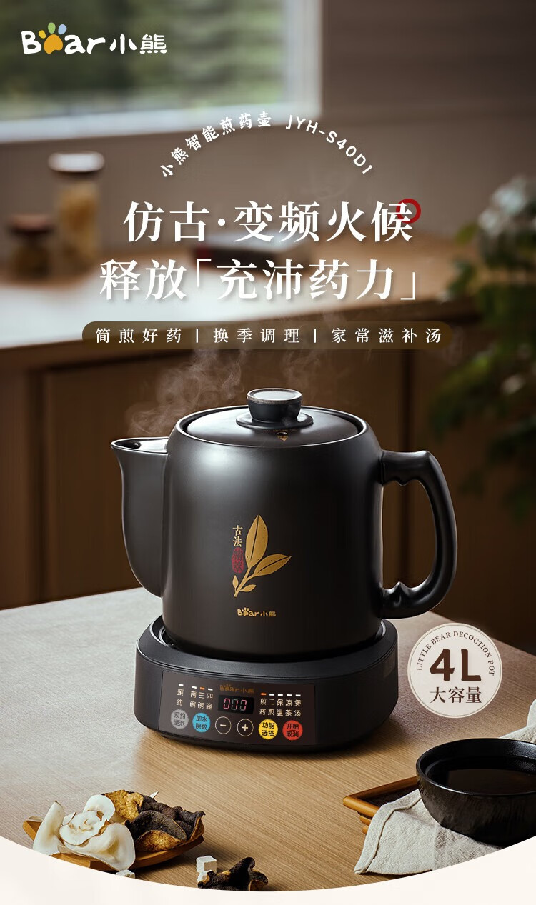 小熊(Bear)煎药壶 中药锅 3.5L中药壶 养生壶 全自动熬药砂锅药罐 电药壶 煲药熬药锅陶瓷 JYH-B40Q1