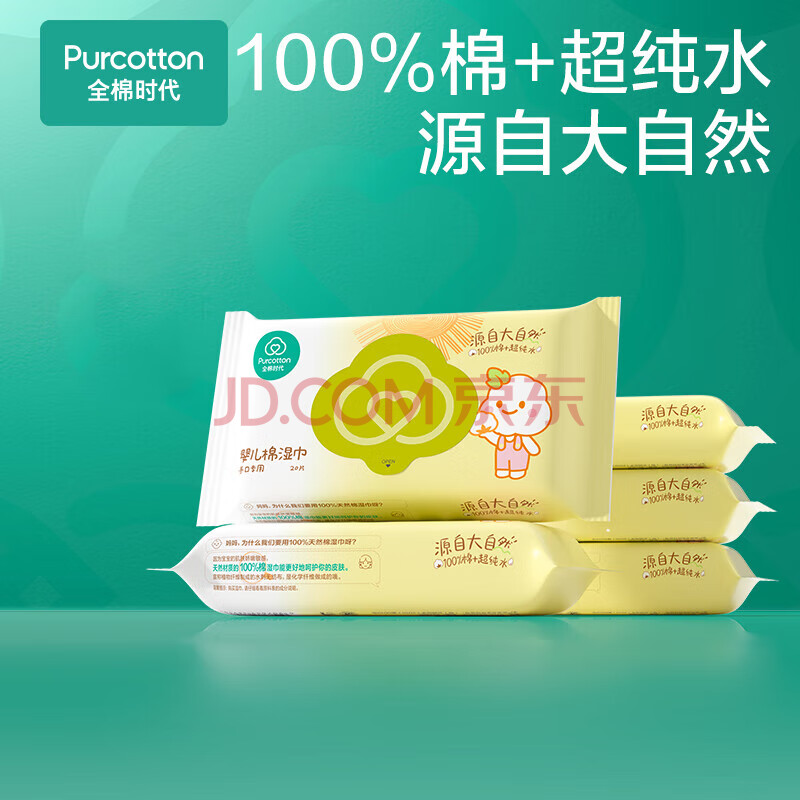 全棉时代婴儿湿巾宝宝湿纸巾出行便携 20片*5包/袋 2袋10包共200片