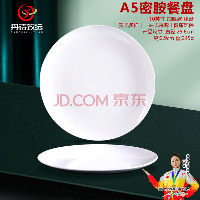 丹诗致远 A5密胺浅盘商用自助餐圆盘菜盘仿瓷餐盘 浅盘10英寸10个