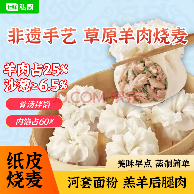 七鲜私厨 沙葱羊肉纸皮烧麦240g(6只) 速食早餐半成品特产年货