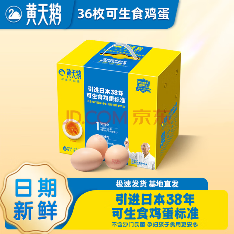 黄天鹅 可生食鲜鸡蛋36枚 新鲜鸡蛋 健康轻食不含沙门氏菌 礼盒装