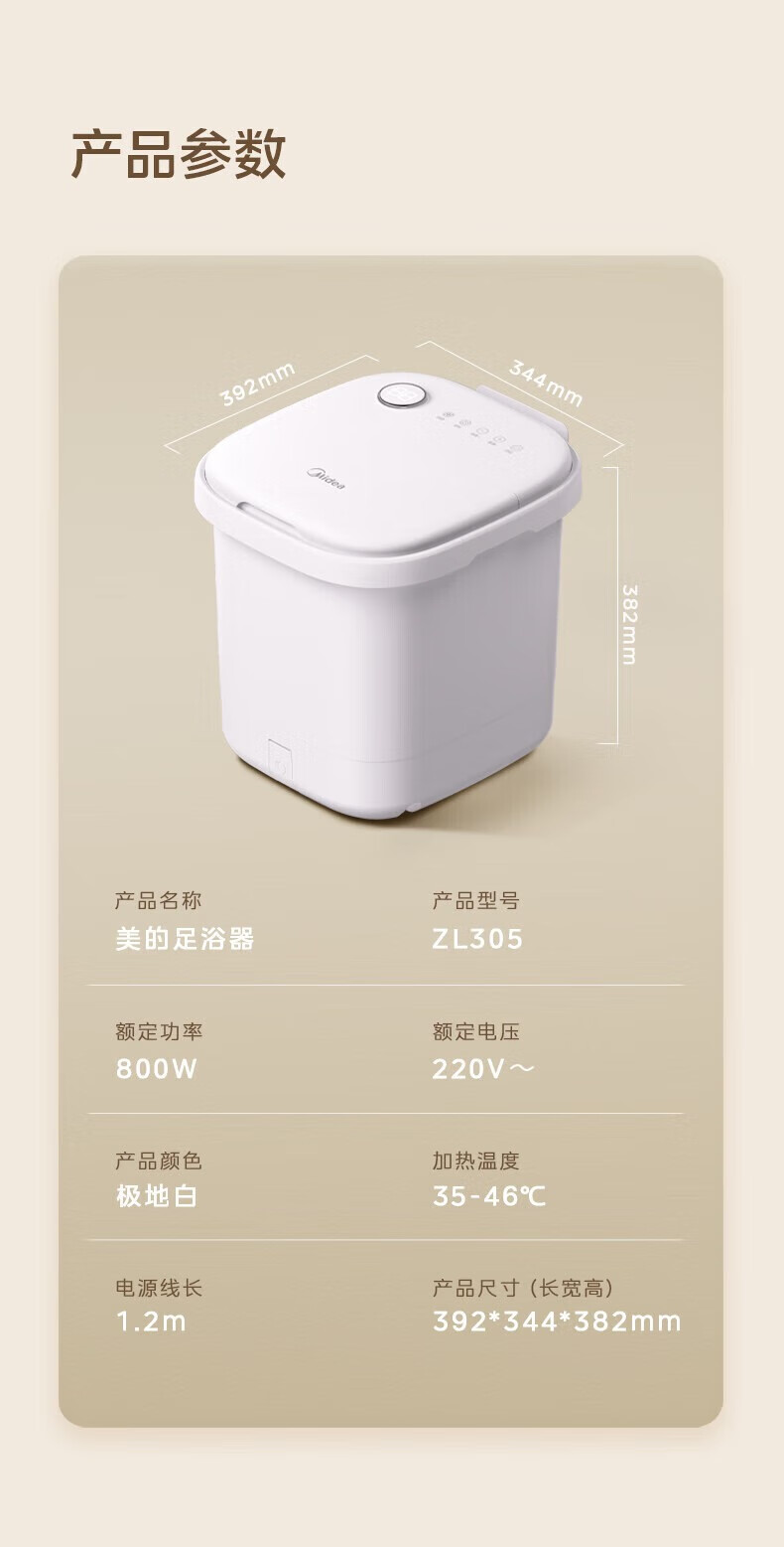 美的(Midea)足浴盆·加热自动按摩恒温调节高深桶 秋冬送长辈父母 /ZL305极地白