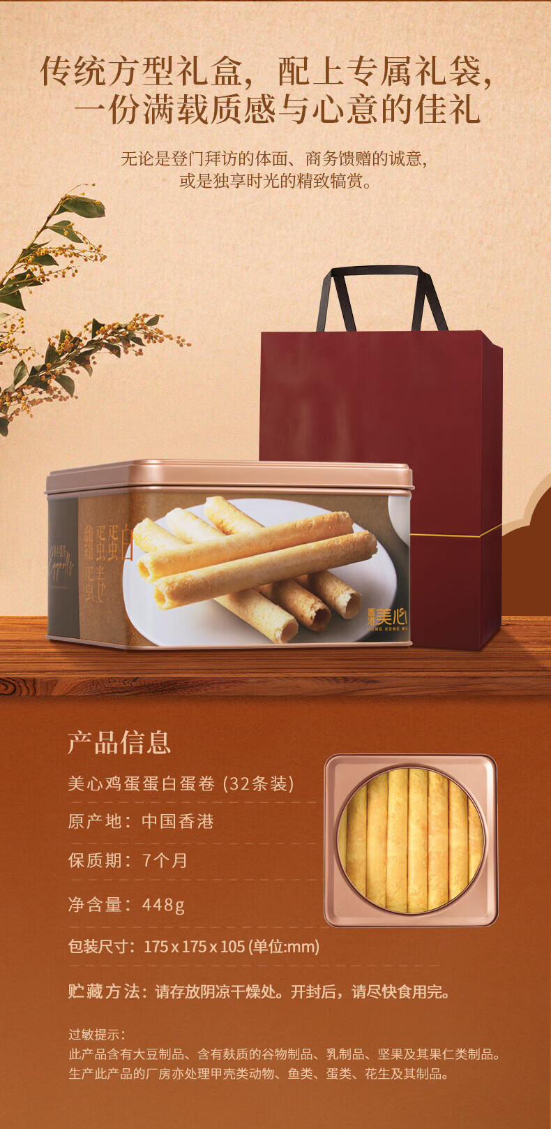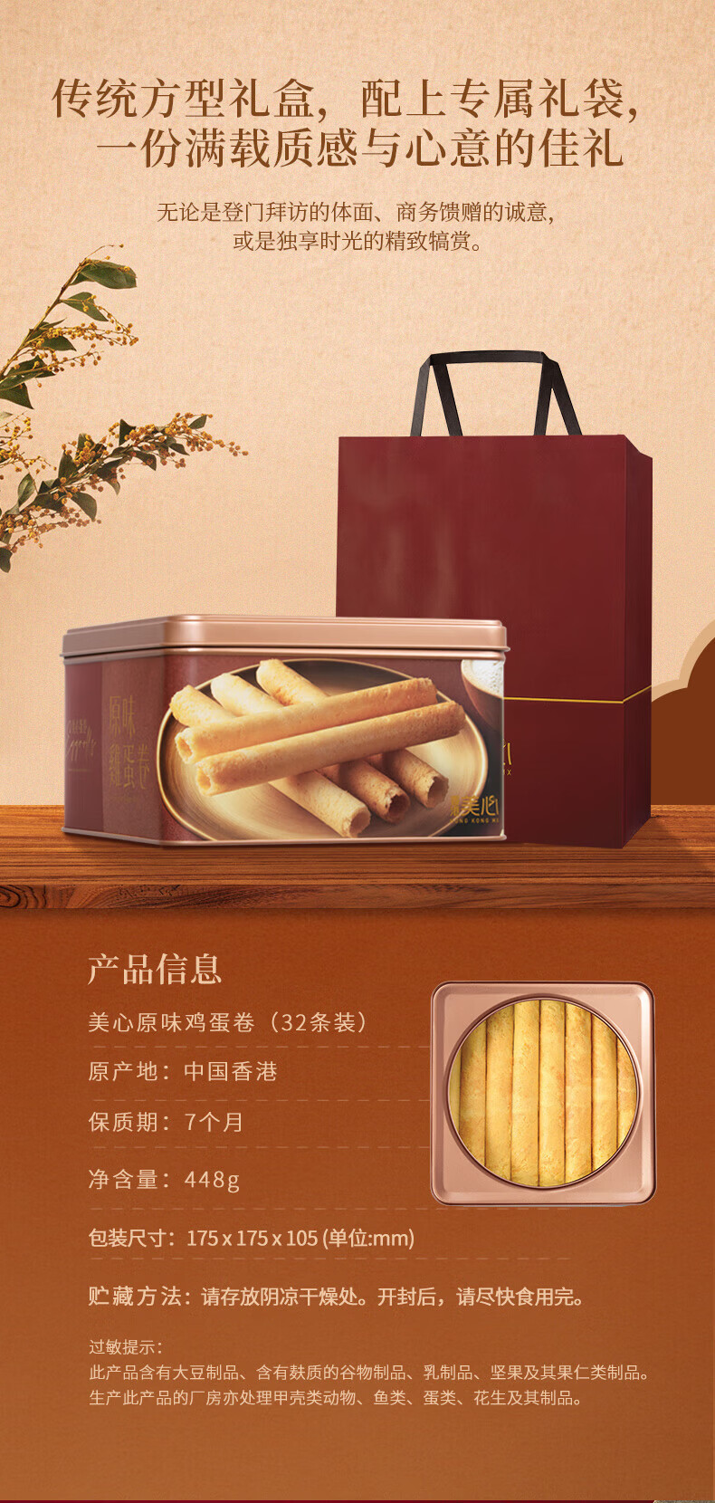 美心(Meixin)原味鸡蛋卷礼盒448g
