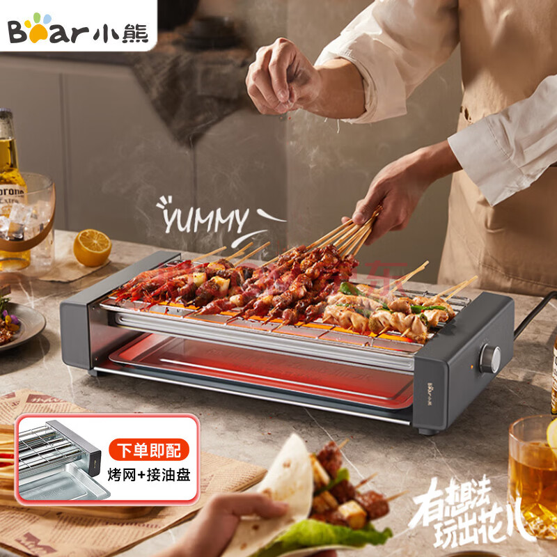 小熊 电烤炉 家用电烧烤炉 电烤串机 烧烤架 烤肉炉电烤架 室内无烟烤肠机【接油盘+烤网】DKL-L20L5