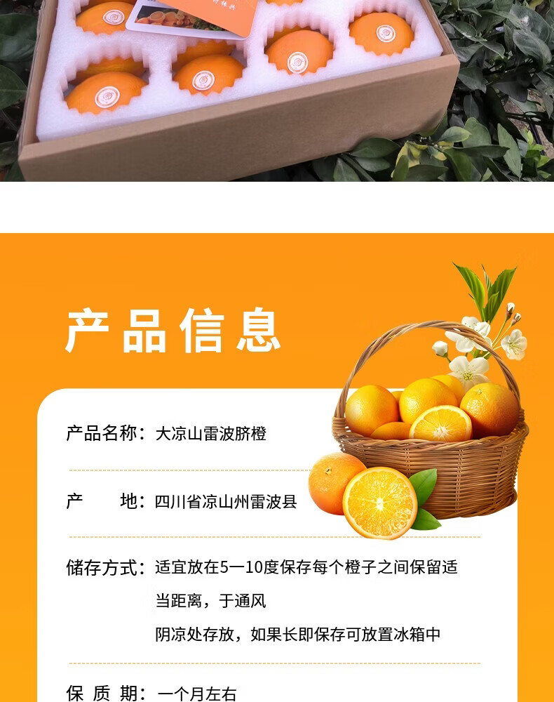 雷波脐橙(LBQC)新鲜当季正宗橙子礼盒装 应季时令水果5kg 中果(70-80mm)