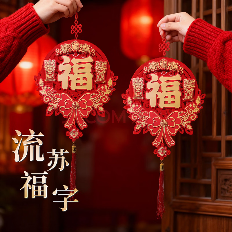 青竹画材(CHINJOO)2026马年过年立体福字挂件装饰品客厅春节入户门挂福布置用品单流苏福字新春福字 【流苏福字】