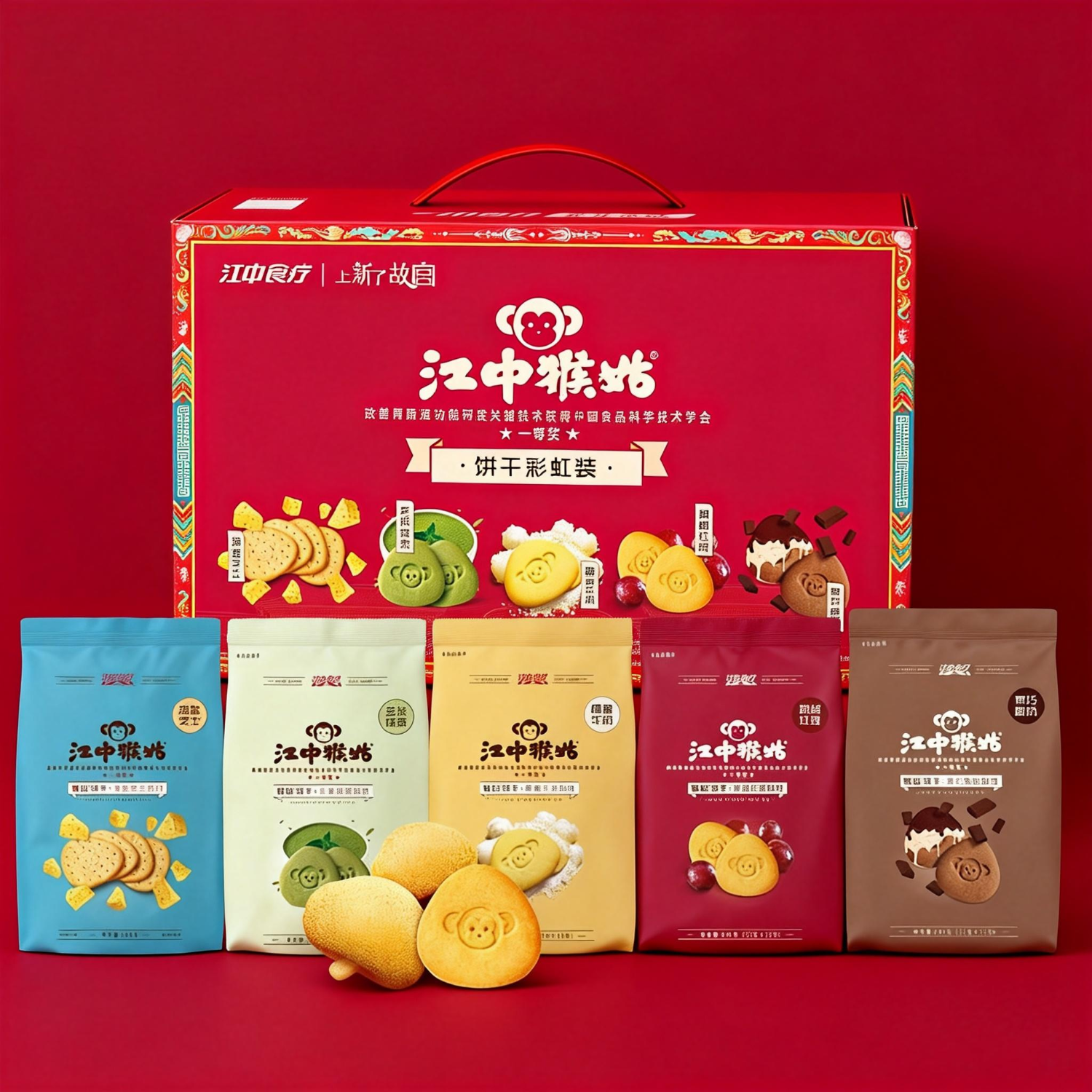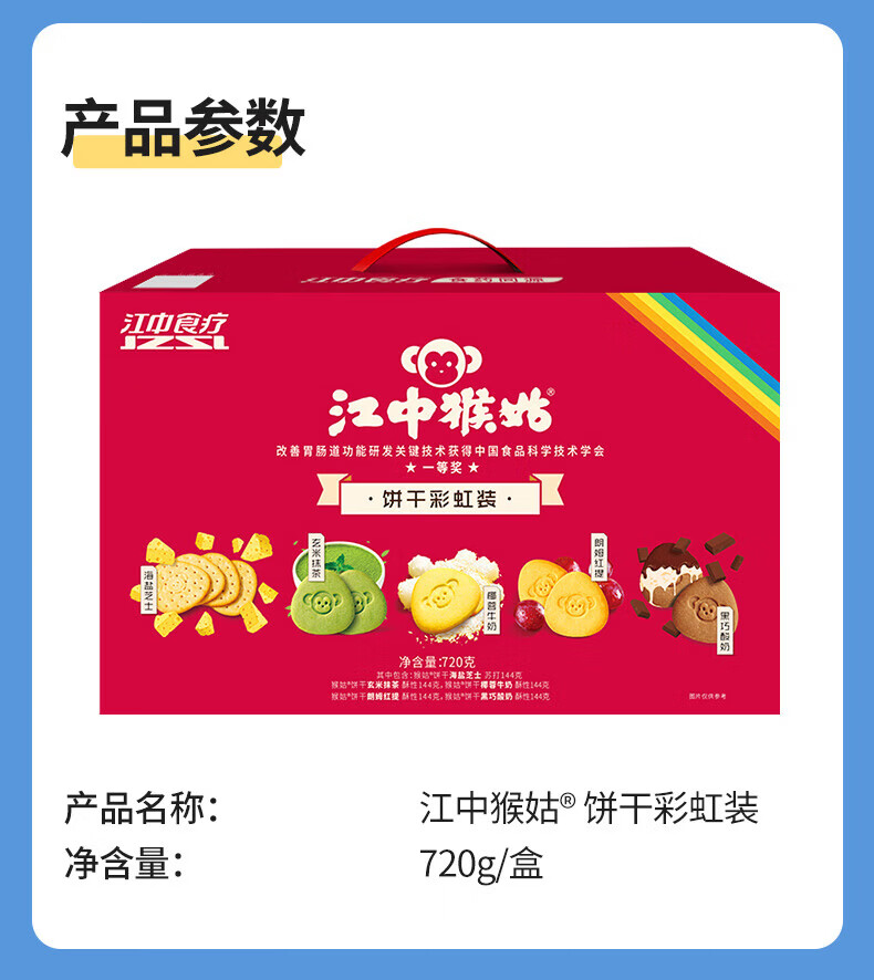 江中食疗 江中猴姑 彩虹猴头菇饼干礼盒装中老年人休闲零食营养早餐720g