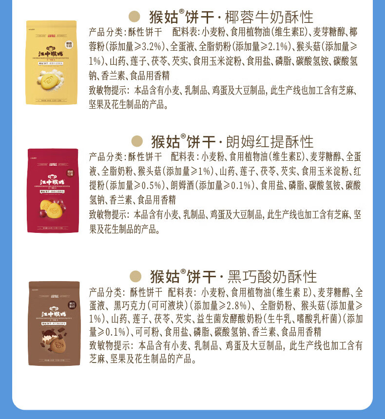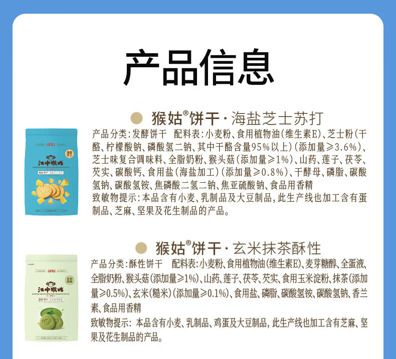 刻凡 猴头菇饼干500g 早餐下午茶饼干糕点心零食品
