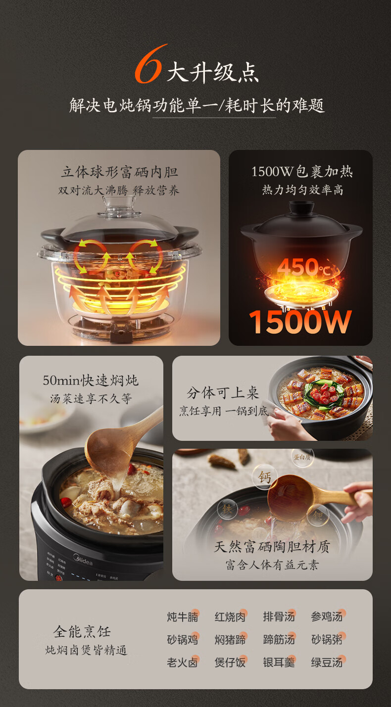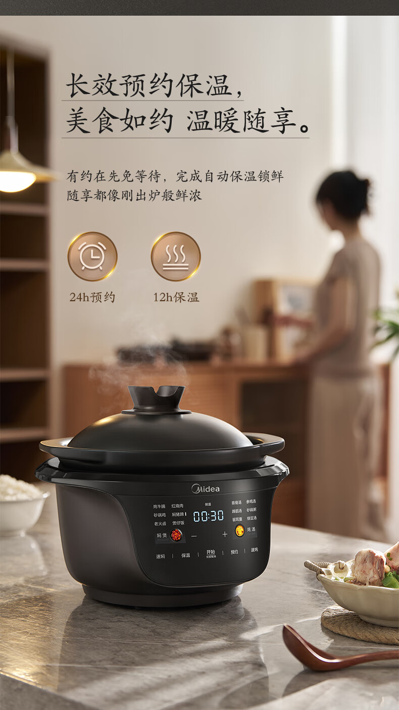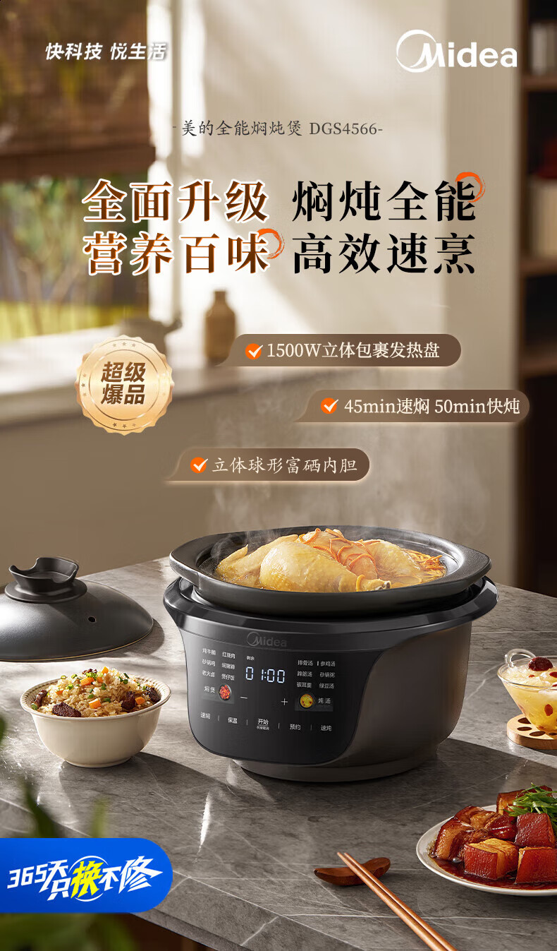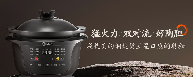 美的(Midea)全能微压电炖锅电砂锅1500W大功率内胆可明火炖汤煲 MD-DGS4566