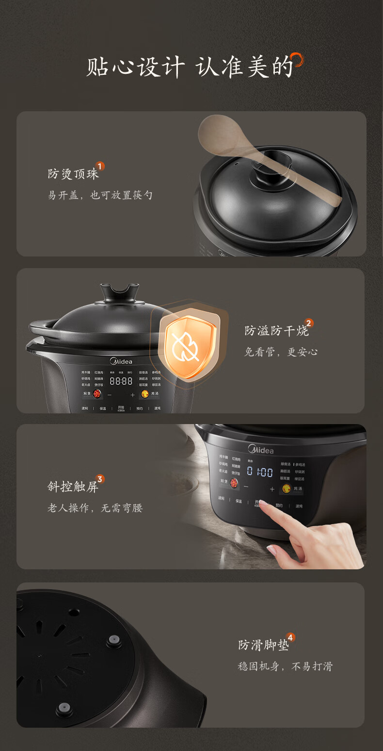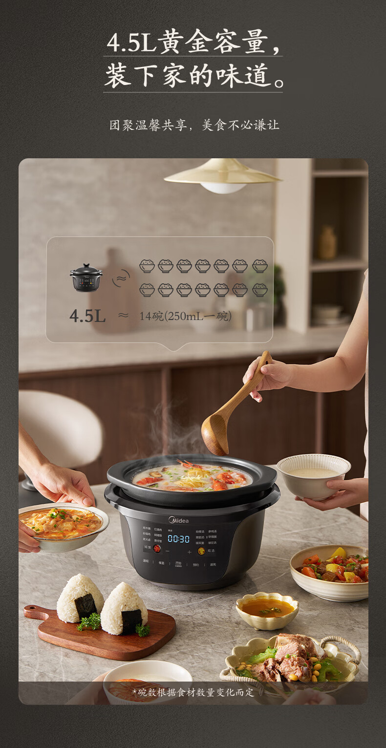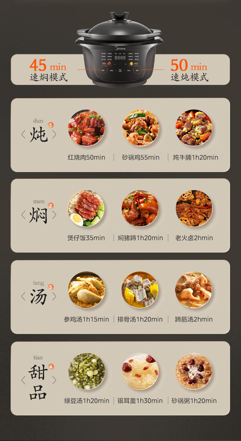 美的(Midea)全能微压电炖锅电砂锅1500W大功率内胆可明火炖汤煲 MD-DGS4566