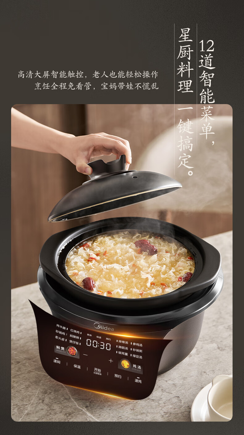 苏泊尔(SUPOR)多功能电炖锅 4升大容量 家用全自动电炖盅 智能预约煲汤锅炖汤锅 精控快速炽陶煮粥锅 TG40YC5