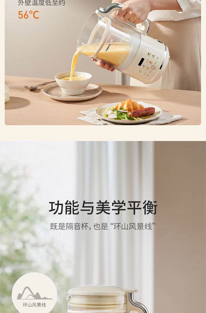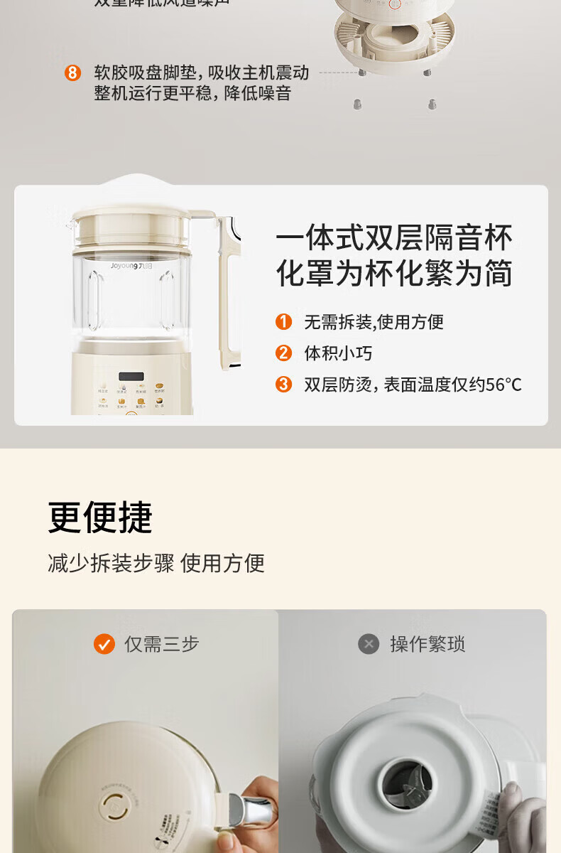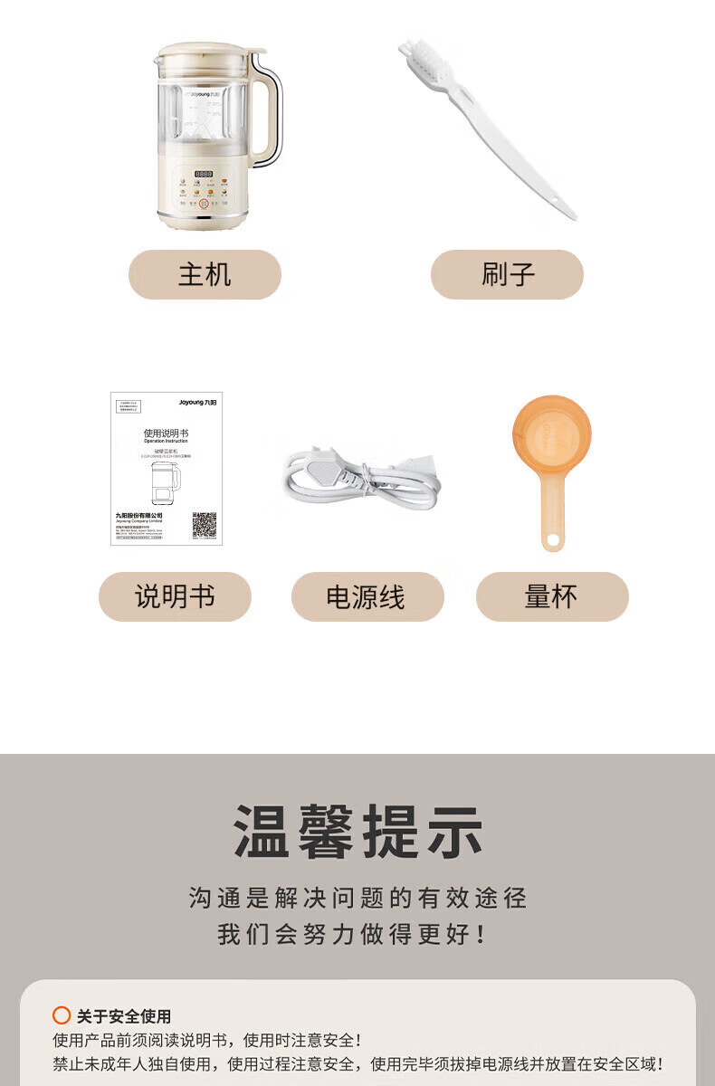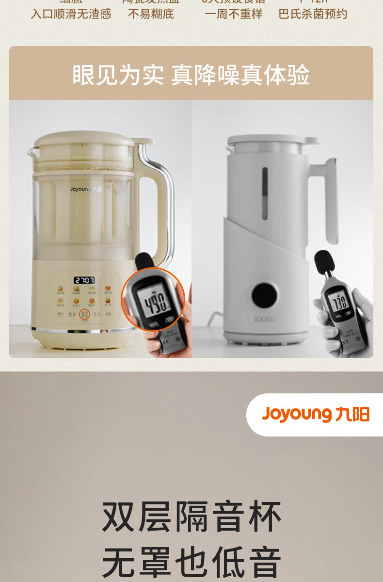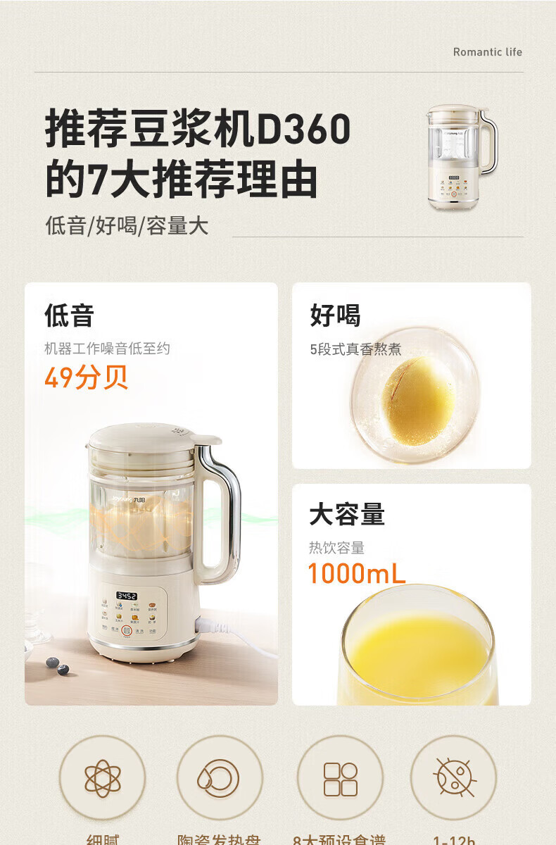 (JOYOUNG)九阳豆浆机1.2L轻音破壁机家用全自动降噪小型多功能免过滤免煮辅食机一键清洗料理机DJ12X-D360(白)