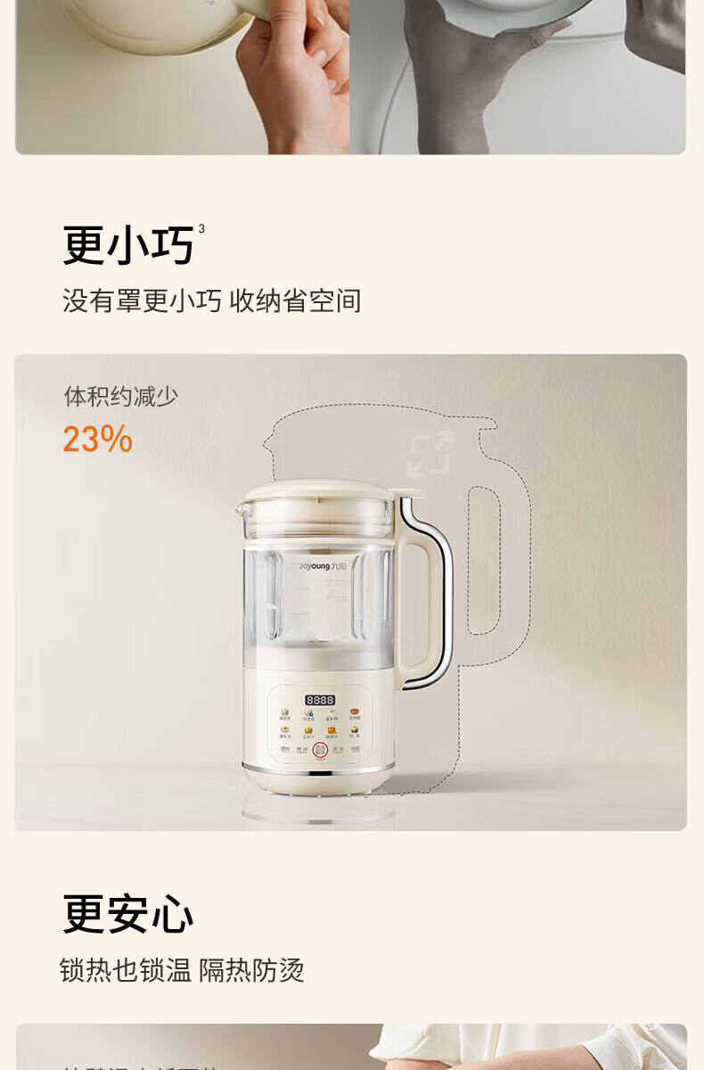 九阳(Joyoung)迷你豆浆机小型破壁免滤1-2人小容量家用米糊机DJ03X-D120(白)