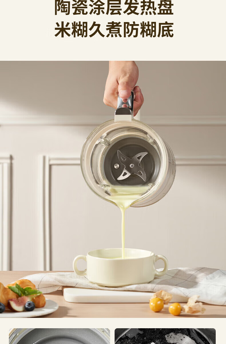 小熊(Bear)豆浆机 迷你破壁机 0.8L小型米糊机 多功能全自动清洗免过滤 1-3人食 PBJ-E05K1