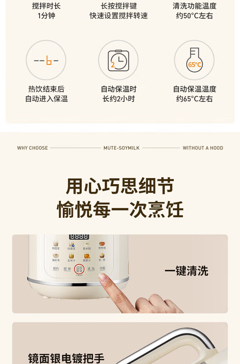 九阳(Joyoung)DJ12B-A802SG 304不锈钢多功能豆浆机 1.2L 白色