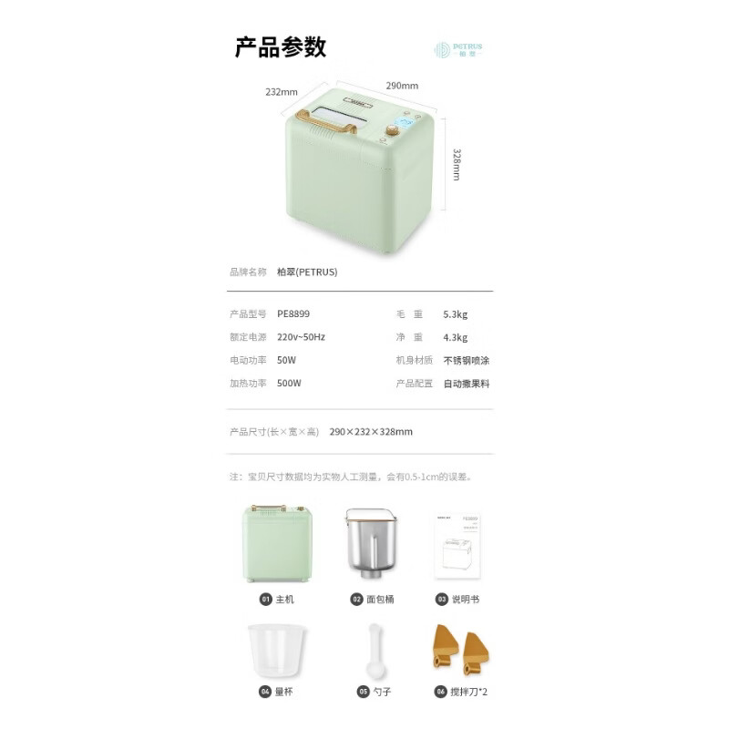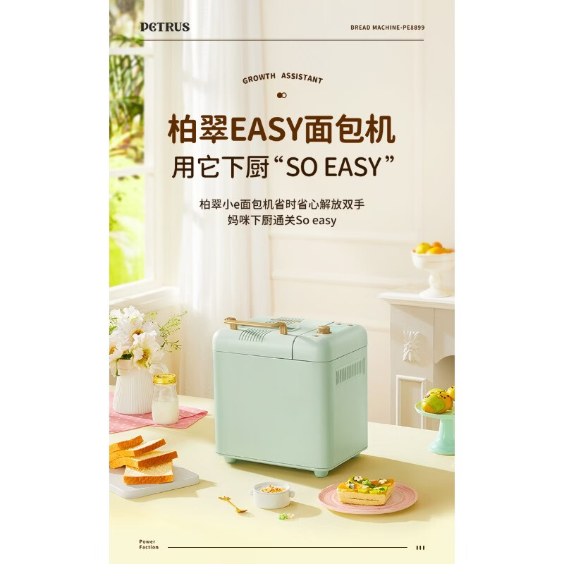 柏翠(petrus)面包机·飞梭无极旋钮11项美食菜单15小时定时预约 小巧不占地/PE8899
