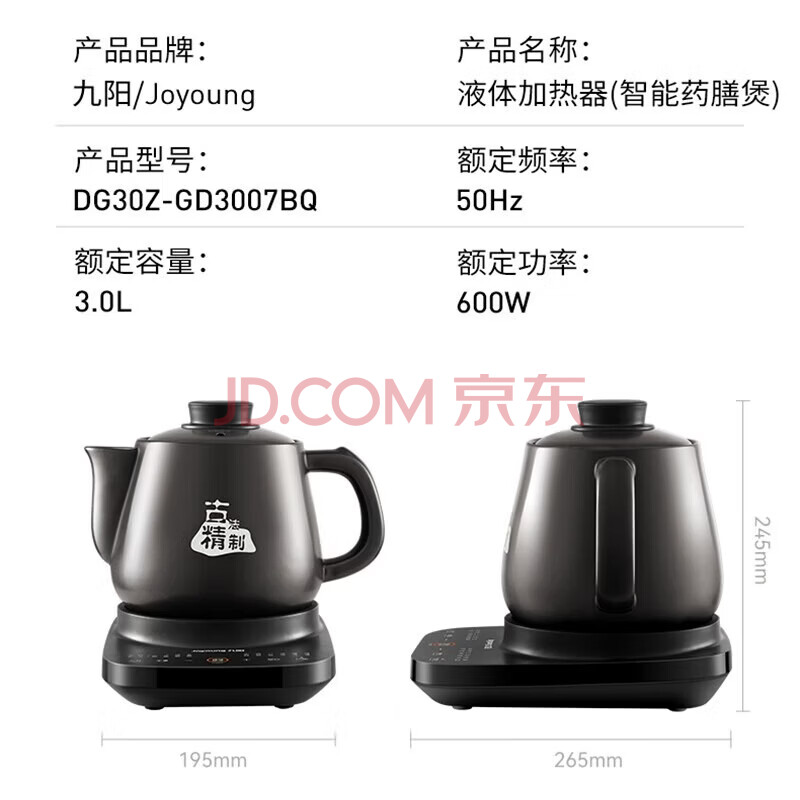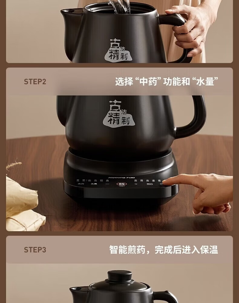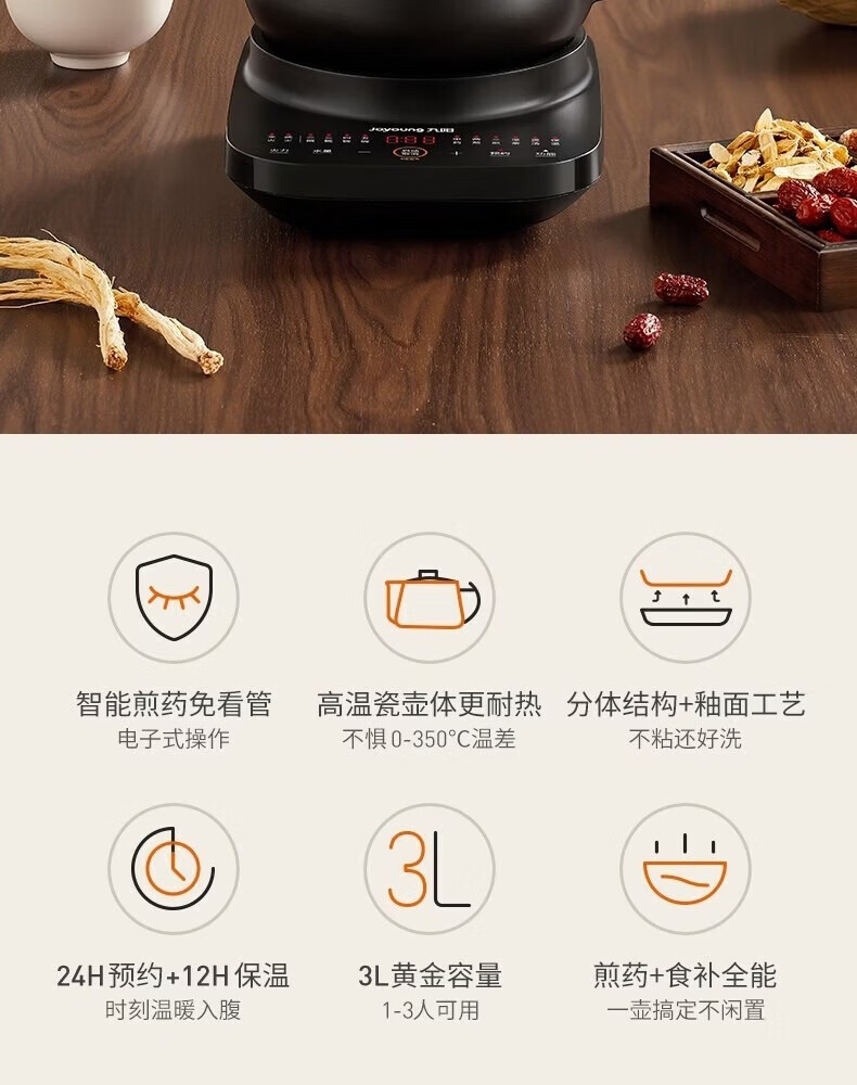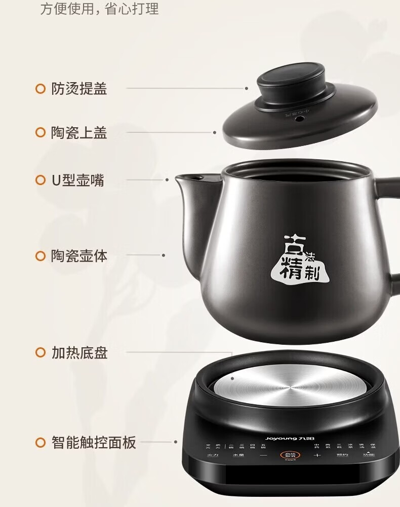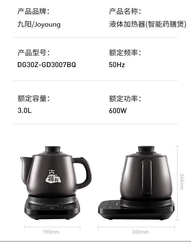 九阳(Joyoung) GD3007BQ煎药壶中药壶 煎中药锅 全自动电砂锅分体式药膳煲3L