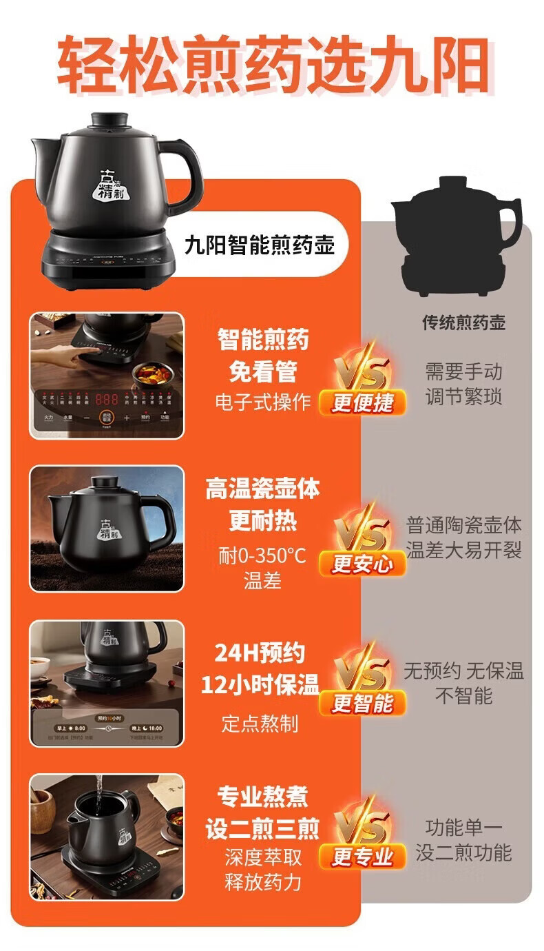 九阳养生壶熬药电砂锅全自动煎药壶分体式陶瓷水壶DGD4003BQ