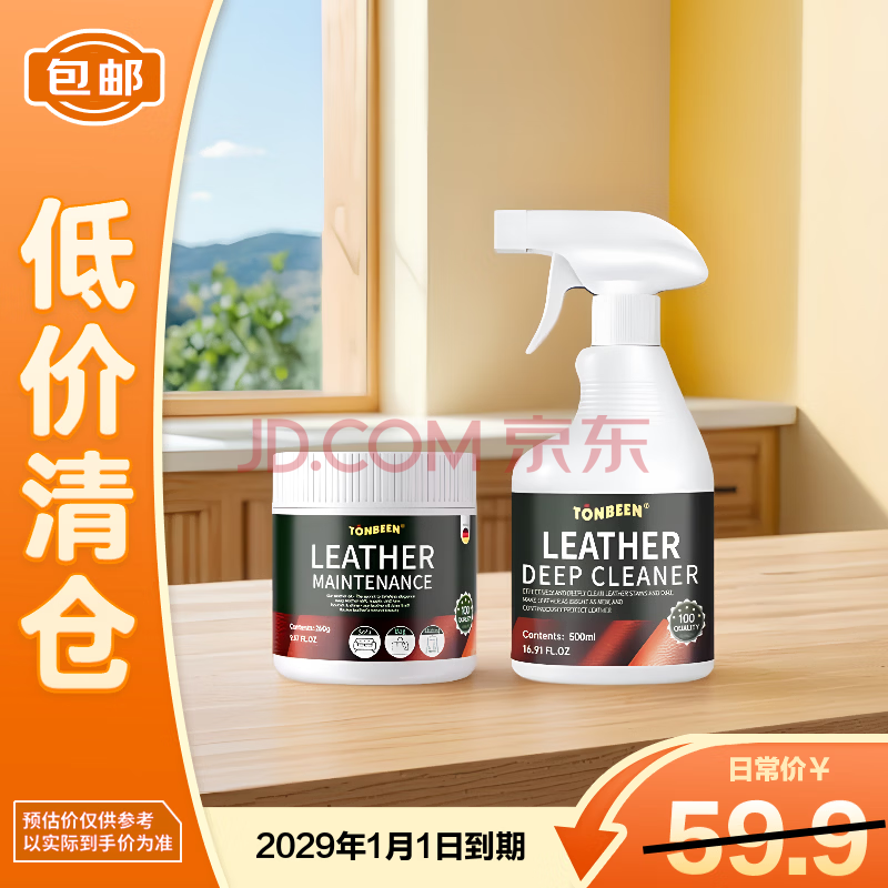 童贝恩皮革皮衣皮具沙发清洁剂500ml+皮革保养膏260g【临期清仓】