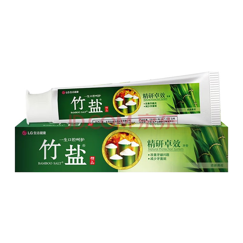竹盐LG牙膏护牙龈减轻牙渍牙菌斑清洁口腔清新薄荷精研卓效170g